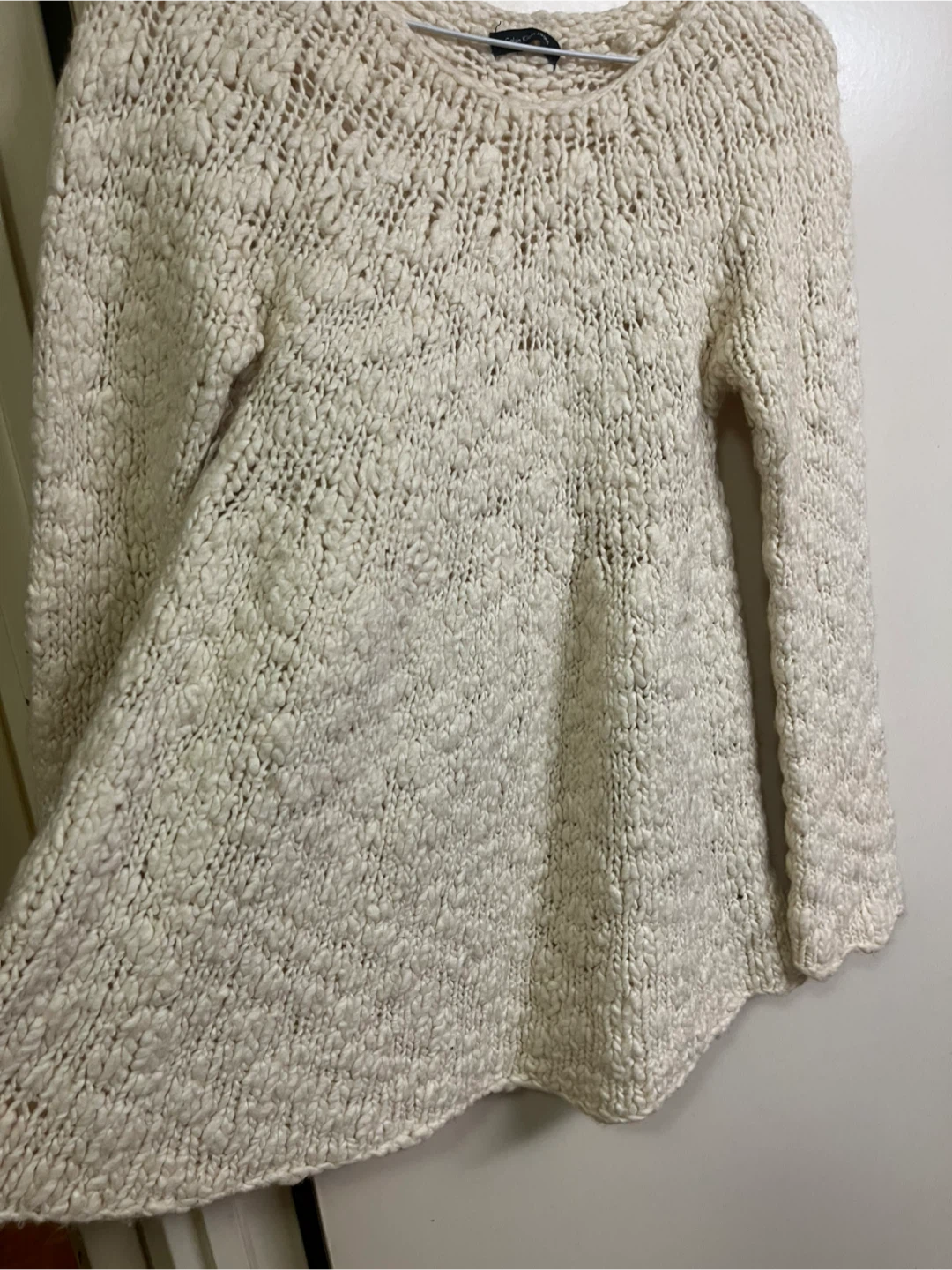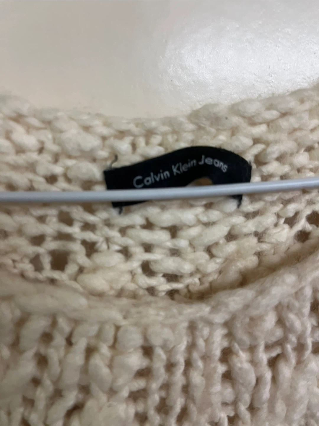 Beautiful unique cream-coloured knit baby doll sweater from Calvin Klein Jeans! It's in great condition and ready to keep you warm. Worn twice. Purchased for $130 winter 2023.
