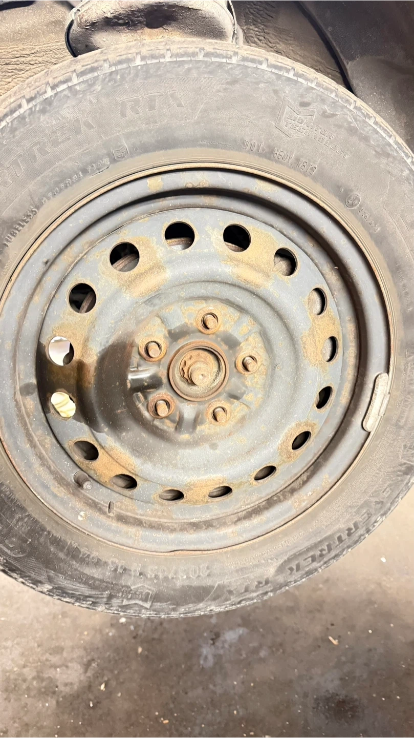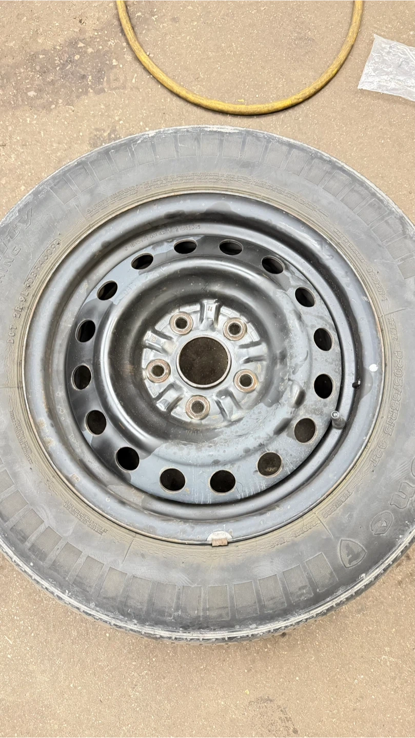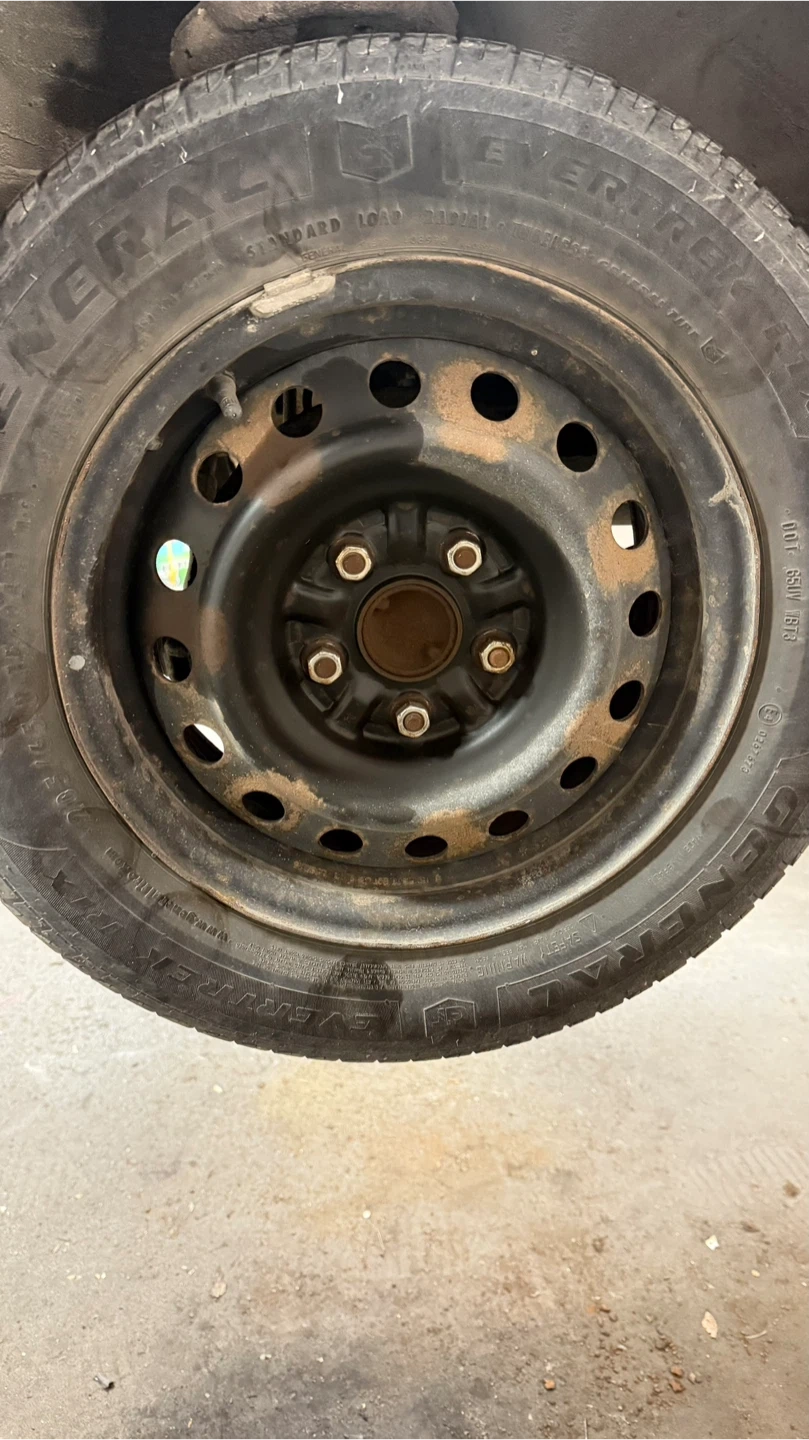 Selling a used General AltiMAX RT43 tire, size 205/65R15, mounted on a steel rim. It shows signs of wear and some rust on the rim, but still has some life left in it. 2 tire still has thread but 2 not.