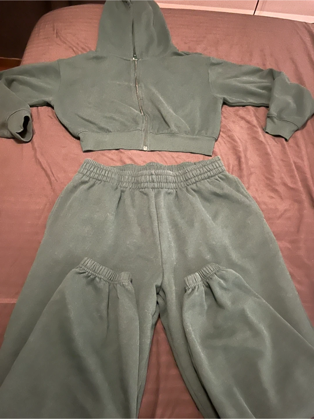 Selling a couple of cozy matching lounge sets! One is a cropped hoodie with sweatpants in a nice green colour( green shows light, it’s a dark hunter green)