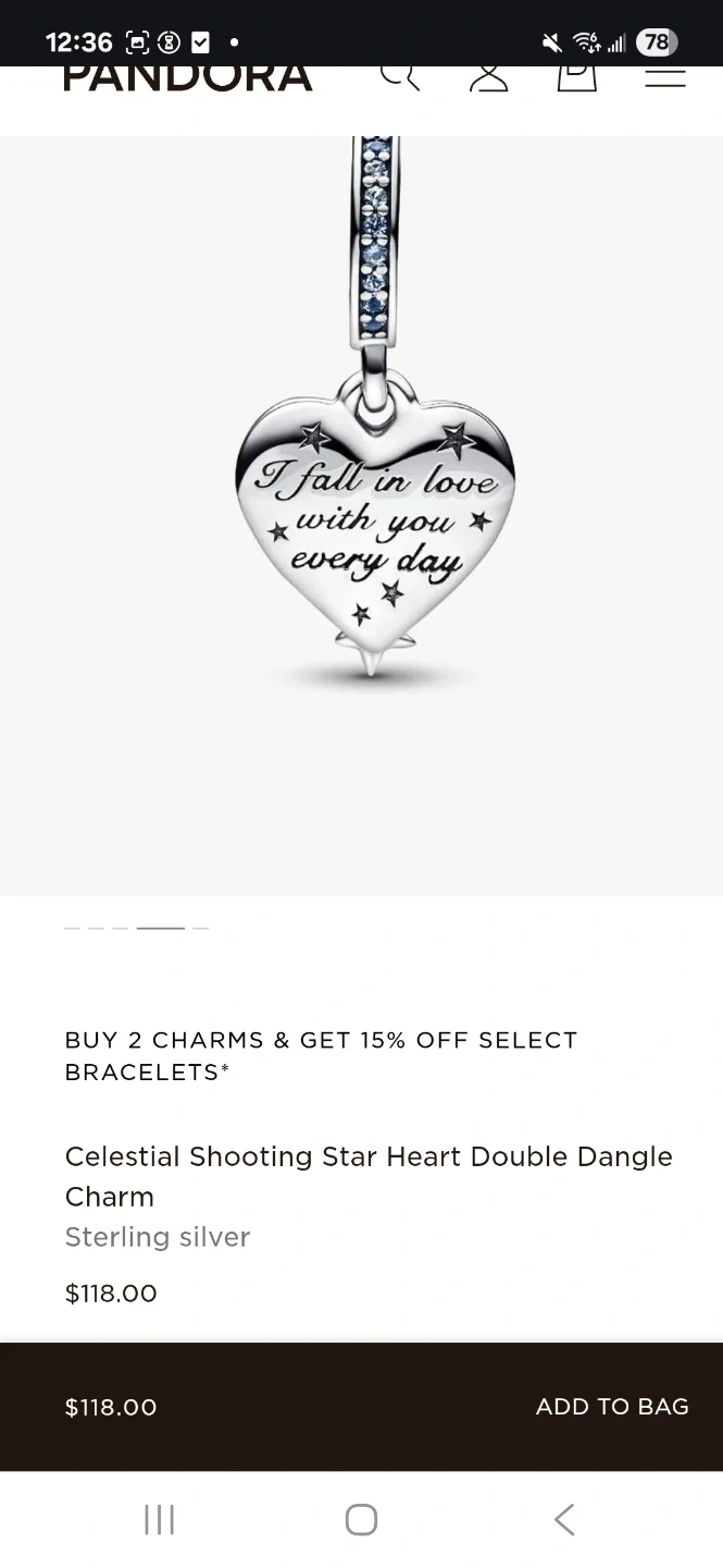 Attached 2 additional photos from Pandora website to show up close details and current retail price. Asking $95 OBO. No low balling please.
