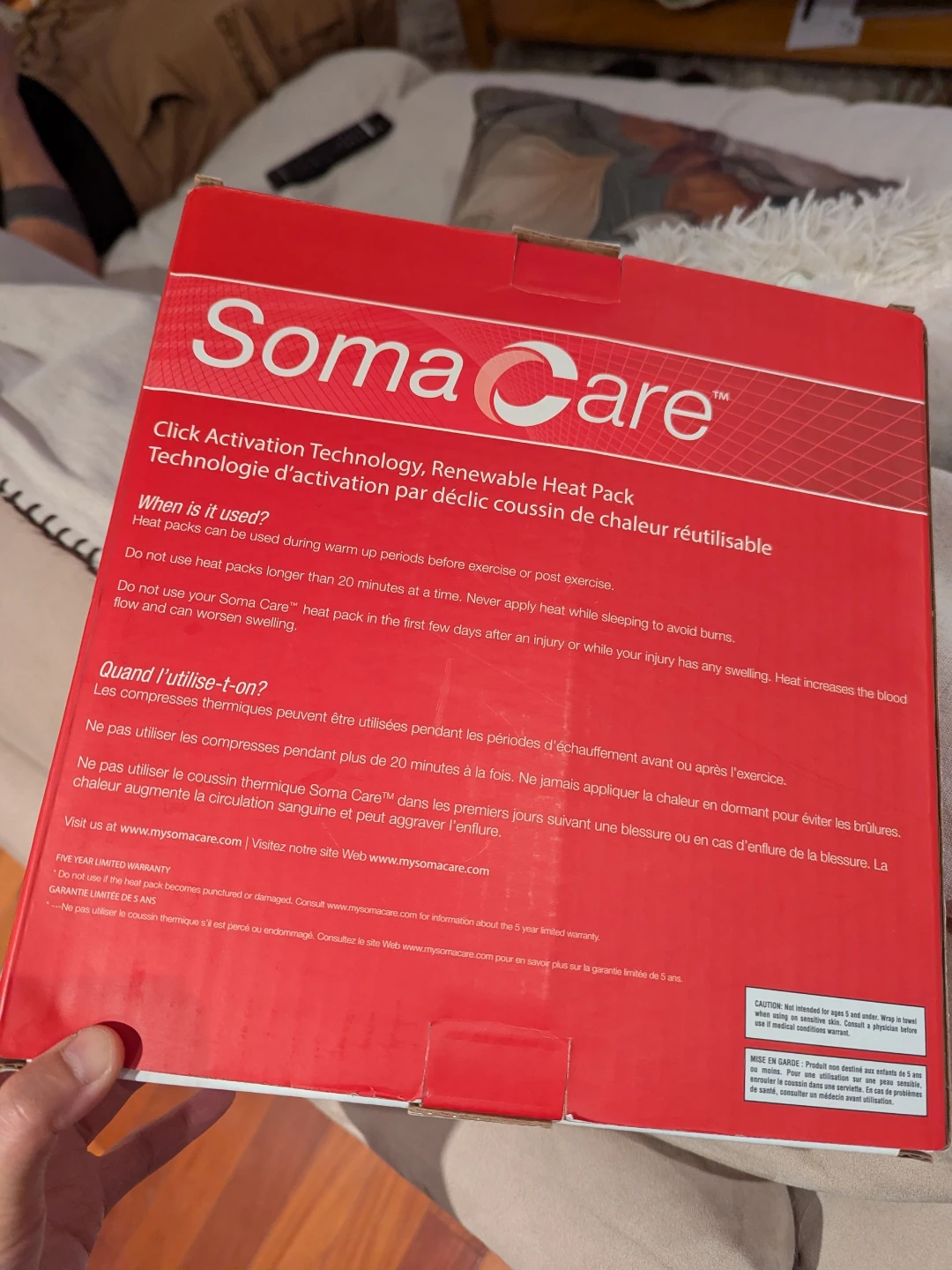 Get ready to soothe those aches and pains with the SomaCare Everything Pack! This set includes a neck and shoulder pack, a large back pack, one medium sports pack, and four small hand packs. It's a renewable heat pack with click activation technology. Brand new in box!
