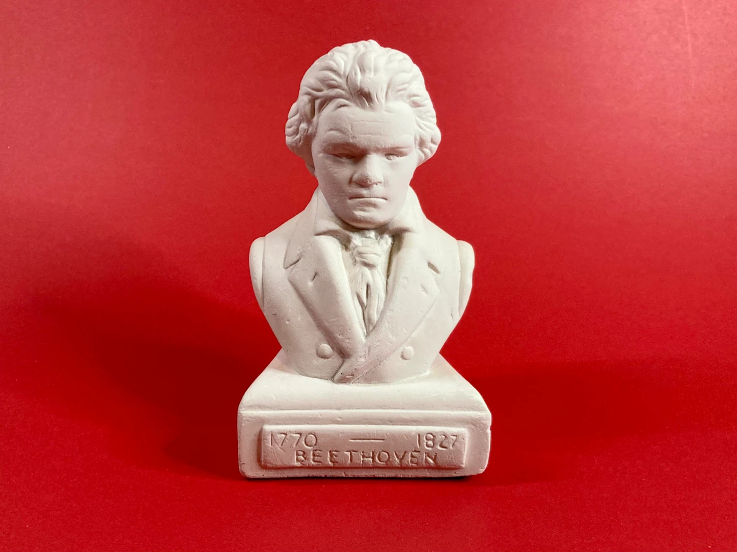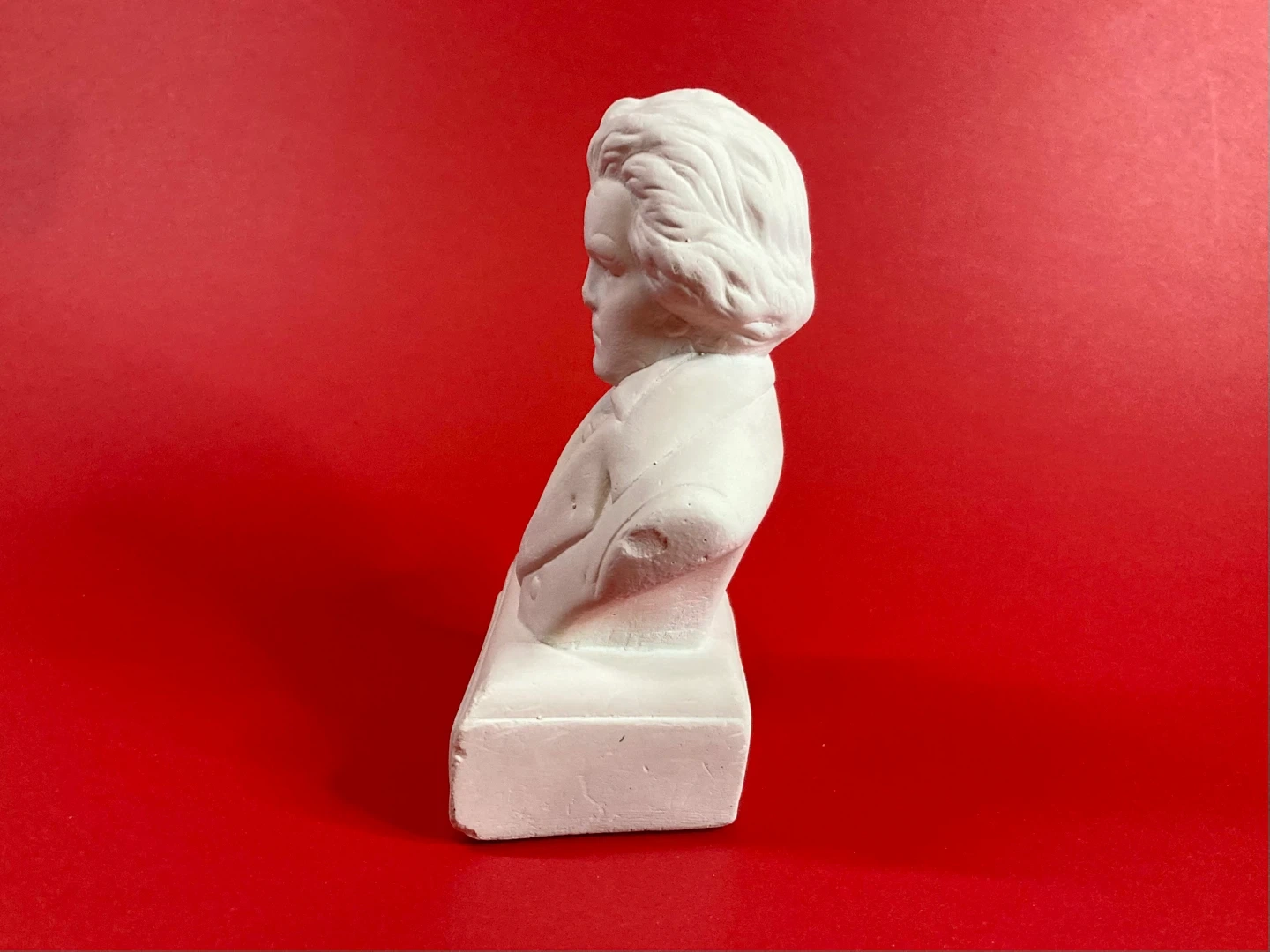 Likely a vintage chalkware bust from the 70s (but can’t confirm) of Beethoven by Willis Music co. Does appear to have wear consistent with age. some minor knicks and a surface crack along the back. Velvet base, about 5” x 3”. Pick up in the Ossington and Davenport area. Please check my listings for other vintage home decor items. 🙂