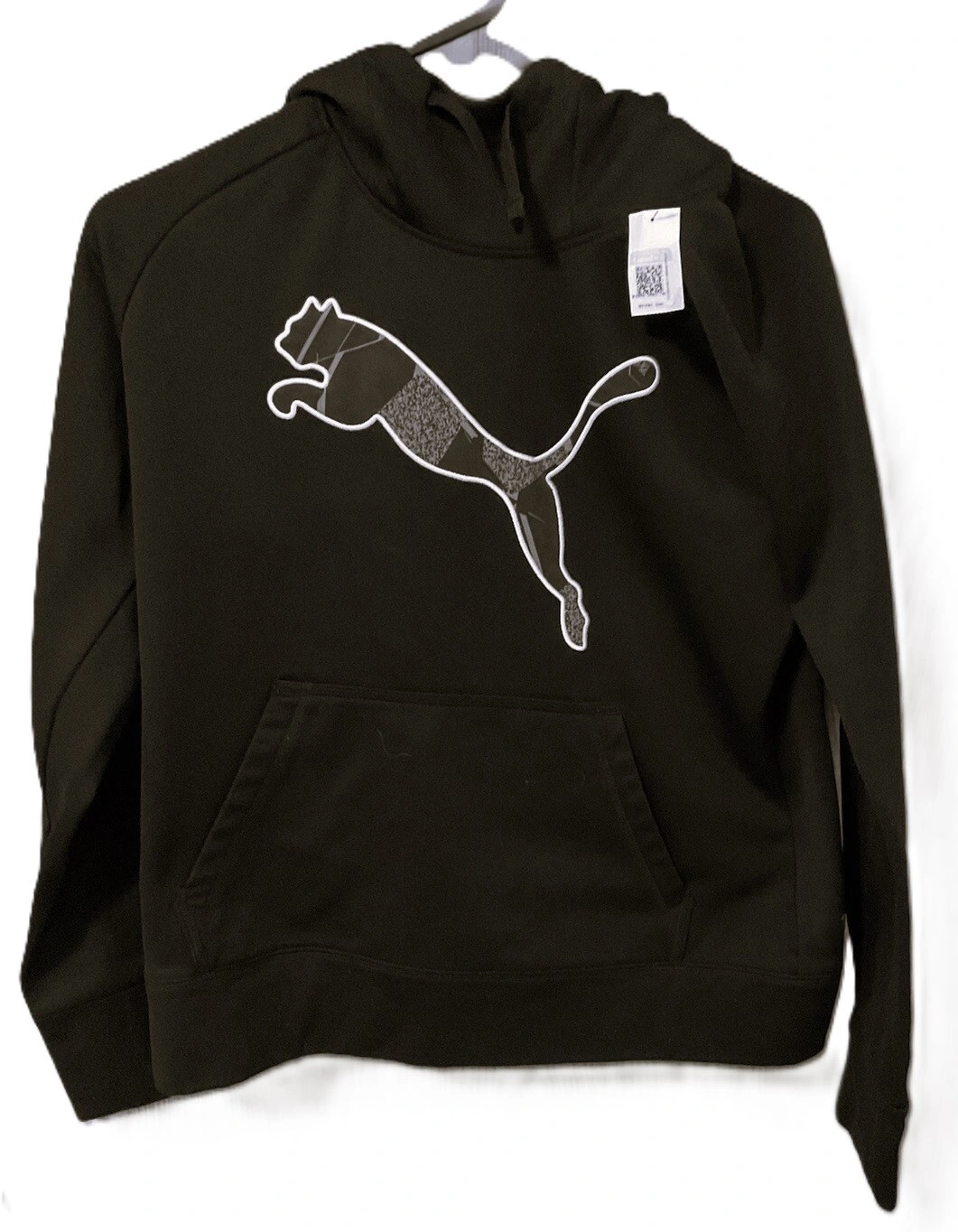 This Puma Hooded fleece pullover, which combines soft cotton and polyester for all-day warmth, will keep you toasty and self-assured. Ideal for social gatherings. Easy charm is added by the quirky design and loose fit.