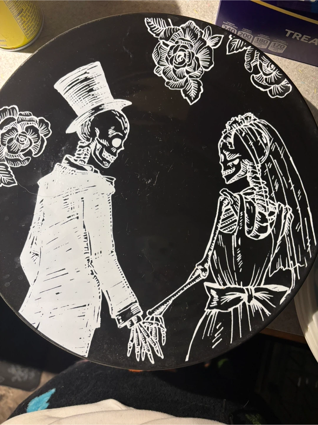 Thesedecorative platesfeatures a skeleton bride and groom design, perfect for adding a unique touch to your home decor! 4 large plates in great condition and ready to find a new home