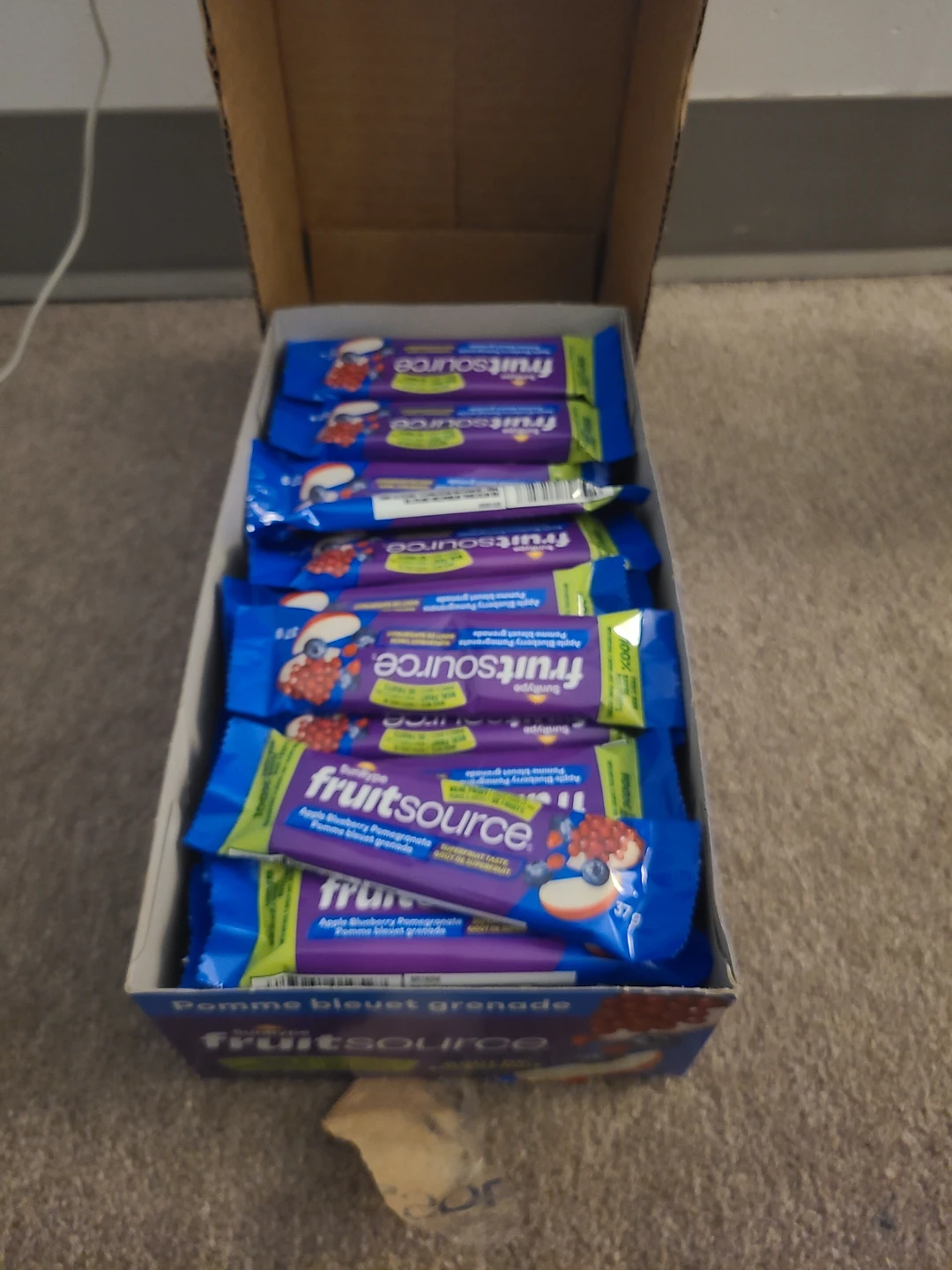 Fruitsource Apple Blueberry Pomegranate fruit bars! Great for a quick snack on the go! Pomme bleuet grenade flavour. 50 bars in a box