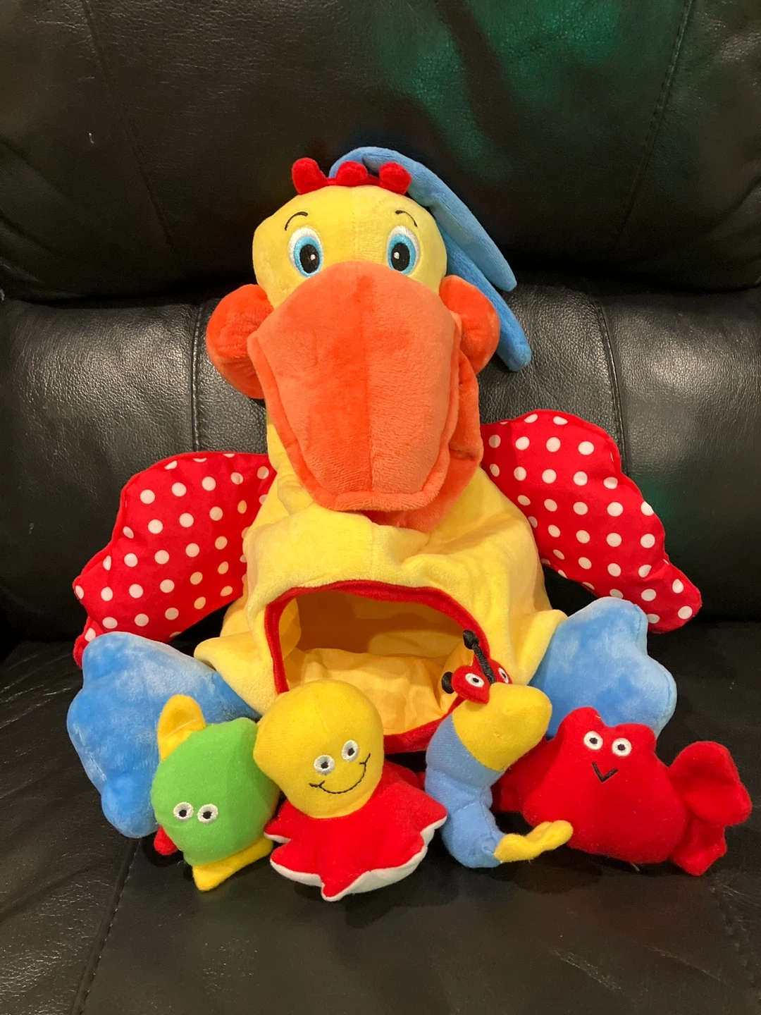 60Selling a super cute and colourful plush pelican toy set! This set includes a large pelican puppet with a large beak able to “eat” the smaller plush toys, including a crab, shrimp, octopus and a fish. Perfect for imaginative play!