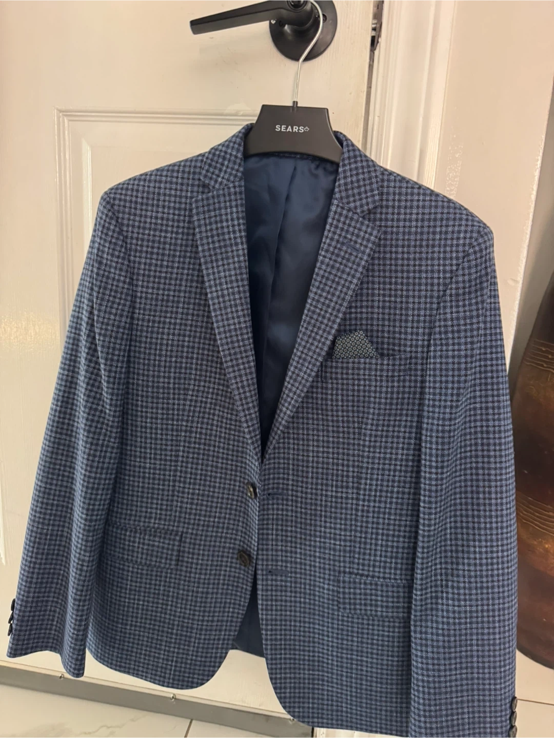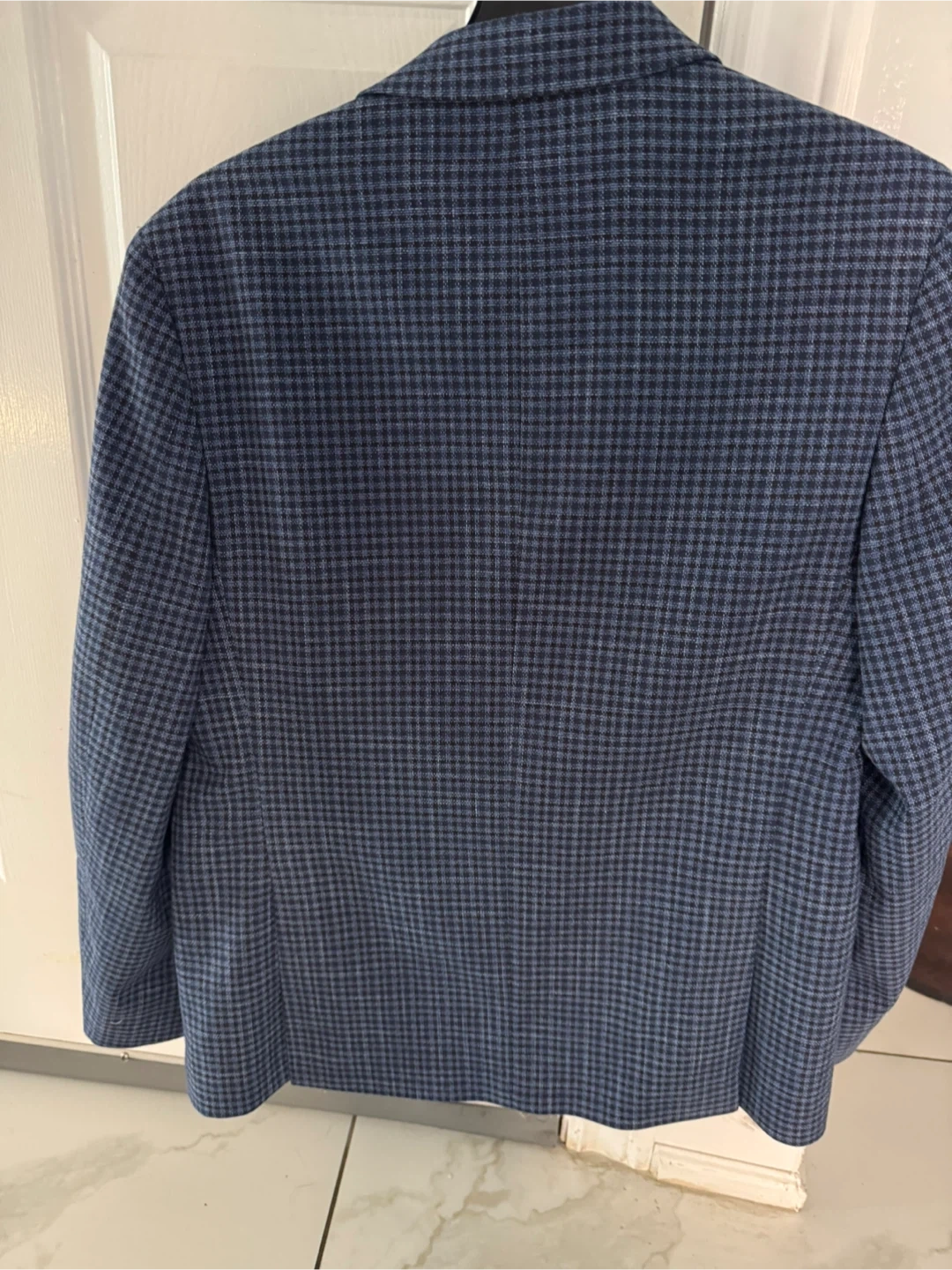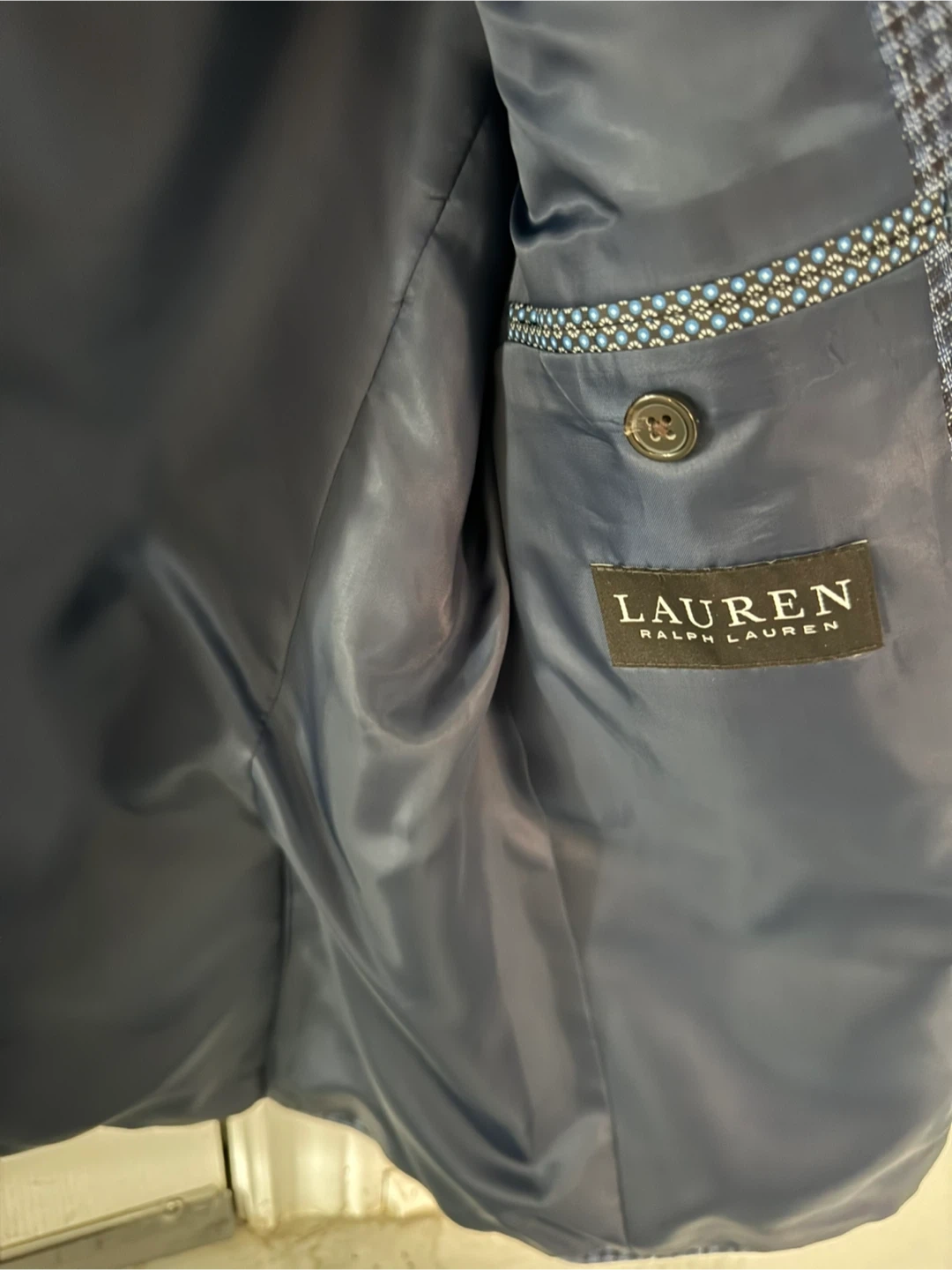 Here's a stylish Ralph Lauren blazer featuring a blue plaid pattern. It's in great condition. Barely worn.