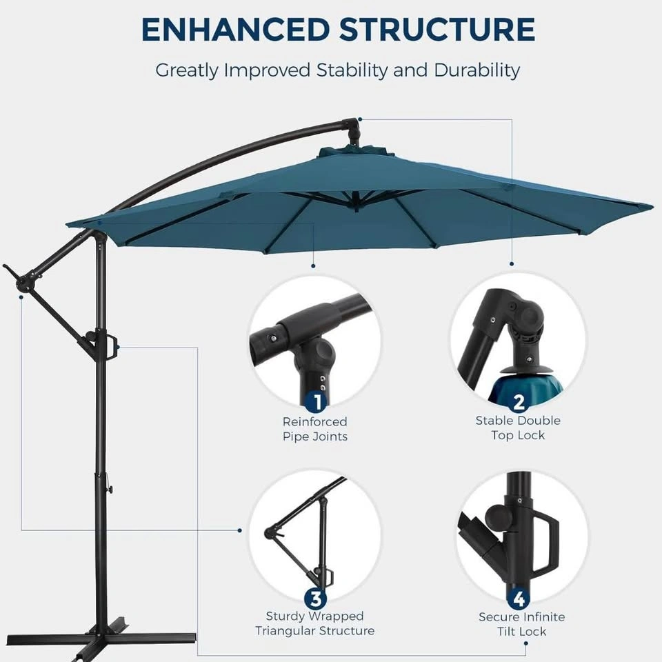 • 10‑foot offset design — wide shade while keeping the pole out of the way