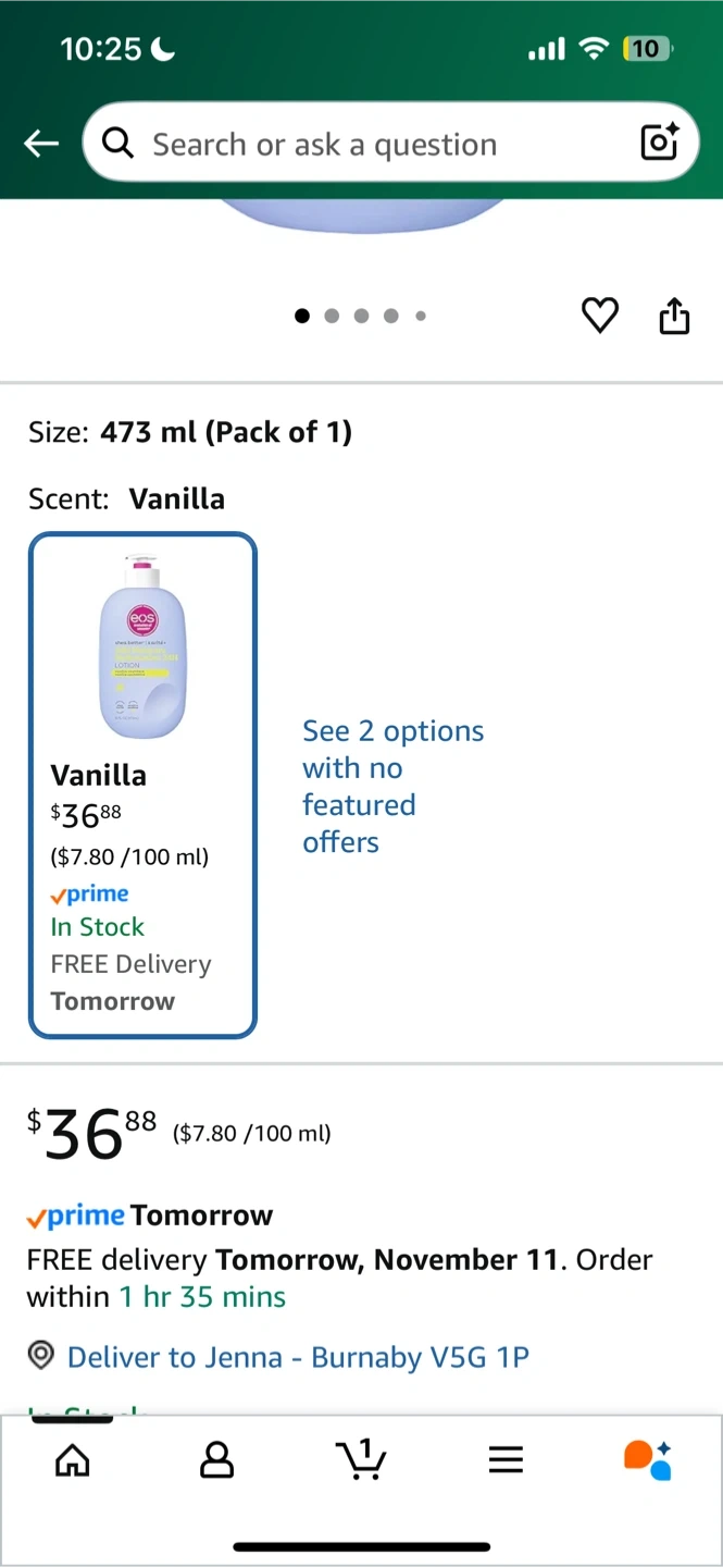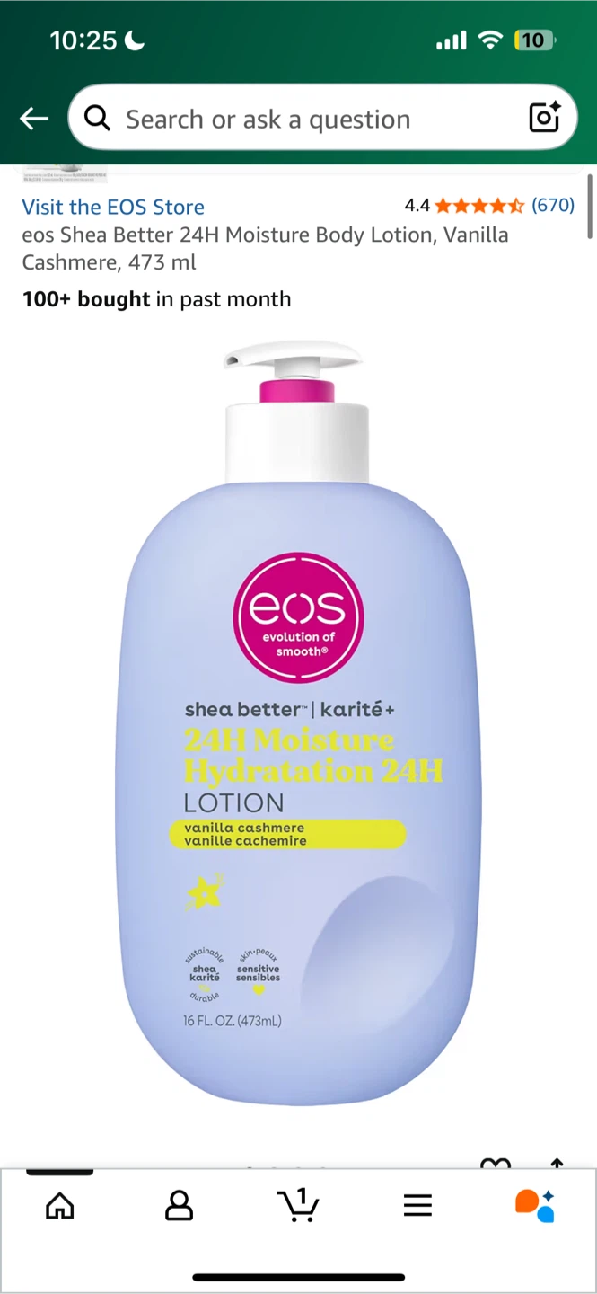 Selling a bottle of EOS Shea Better 24H Moisture Body Lotion in Vanilla Cashmere! This lotion is great for dry skin, with 7 nourishing oils and butters. It's a lovely lotion that leaves your skin feeling soft and smooth. Has been used twice.