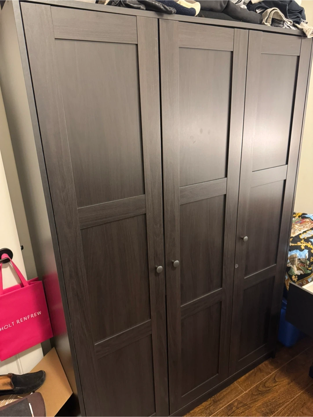Looking to sell my IKEA wardrobe in black-brown. It's in great shape and ready to organize your clothes! It features a combination of hanging space and shelves, perfect for keeping everything tidy. The dimensions are 117.3 cm (46 1/8") wide, 55.0 cm (21 5/8") deep, and 175.7 cm (69 1/8") high
