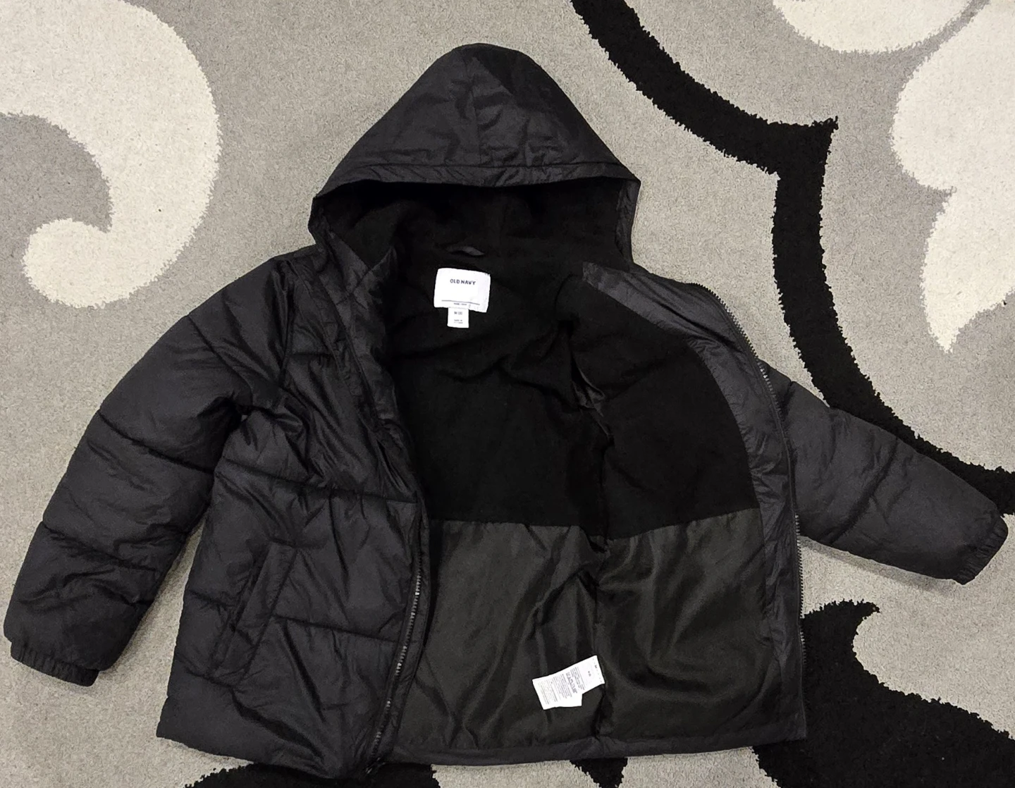 Selling a black boys puffer jacket from Old Navy! It's a size M (8) and features a cozy fleece lining to keep you warm on those chilly days.