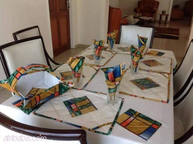 1001 nappe, 08 sous plats, 08 mouchoirs, 01 centre de table et 01 panier à pain