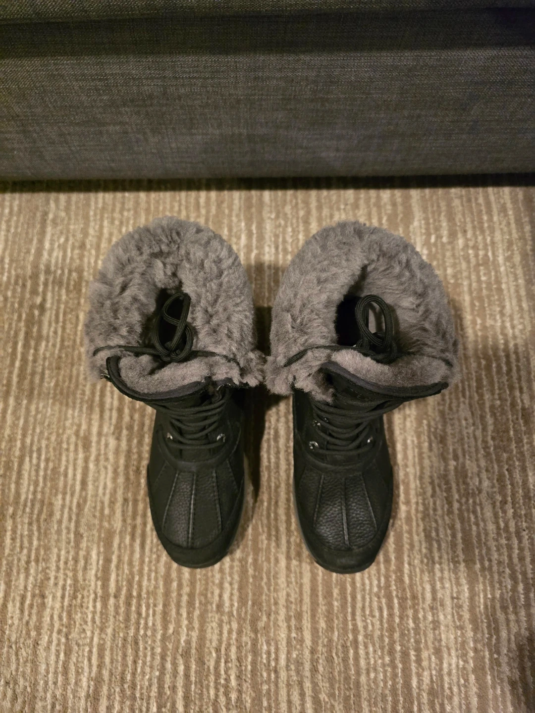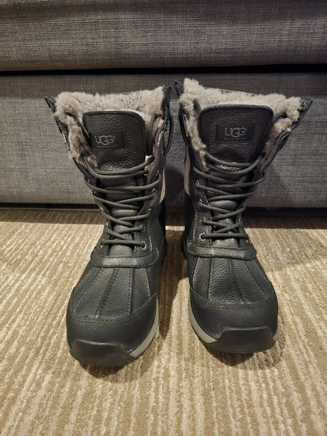 Selling a pair of UGG Adirondack III waterproof winter boots. These boots are perfect for keeping your feet warm and dry during the winter months. They feature a waterproof leather upper, a cozy UGGpure™ wool lining, and a durable Vibram® outsole for traction. The boots are in good condition and have been well cared for