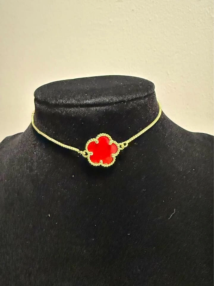 18k Gold fill red clover adjustable bracelet 6-9 inches