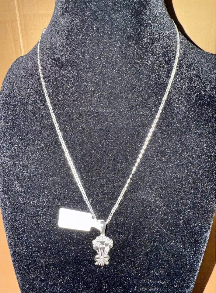 Sterling Silver 925 Heart Flowers pendant