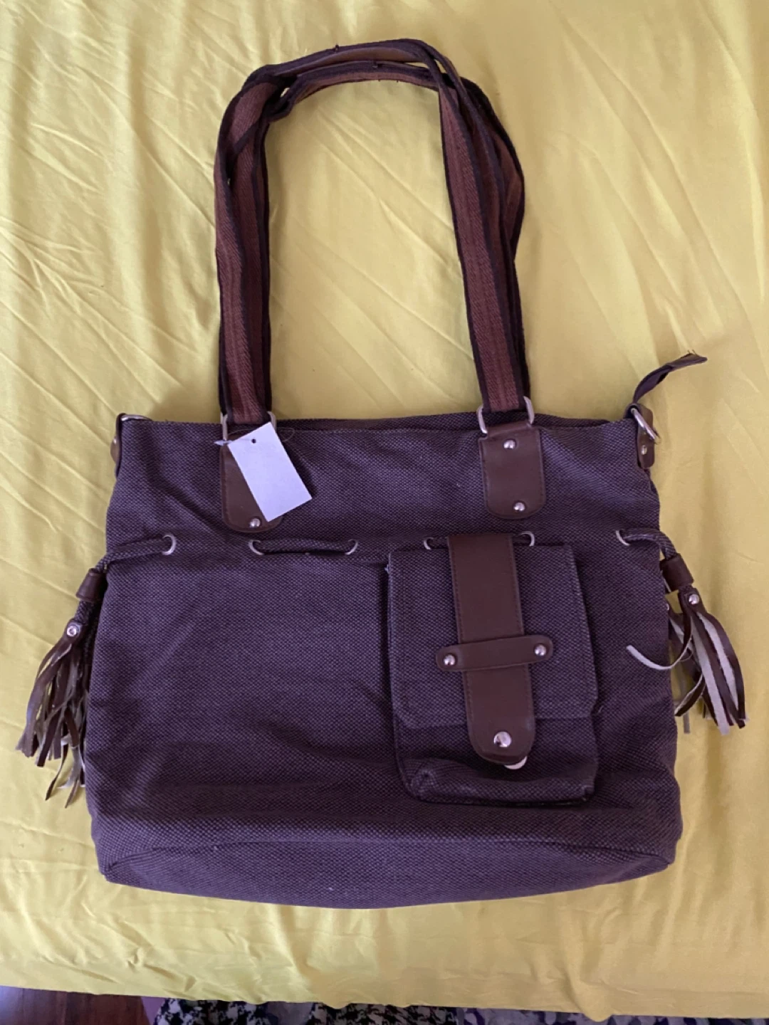 1 / 31 / 3Buy & SellBrown Tote BagBrown Tote Bag$7A stylish brown tote bag with brown and beige straps and tassel details. It has a spacious interior with zipper pockets.ConditionNewSizeLBrandUnknownWHERE TO MEETCheck LocationView MapSELLERverifiedIrenaEglinton W51974 reviews1 chats·2 favorites·126 viewsSEND CHAT TO SELLERHi Irena! I’m interested in your listing.Hi Irena! I’m interested in your listing.Get the Karrot app to chatSign In to chat
