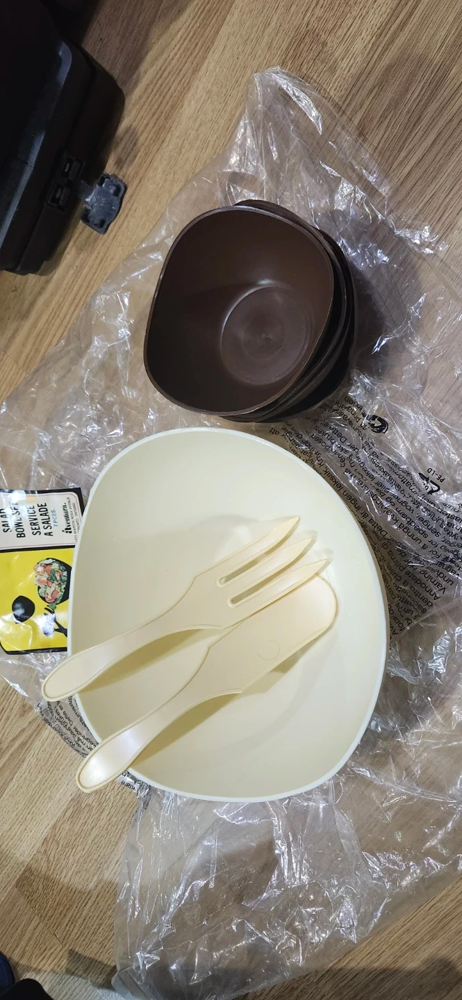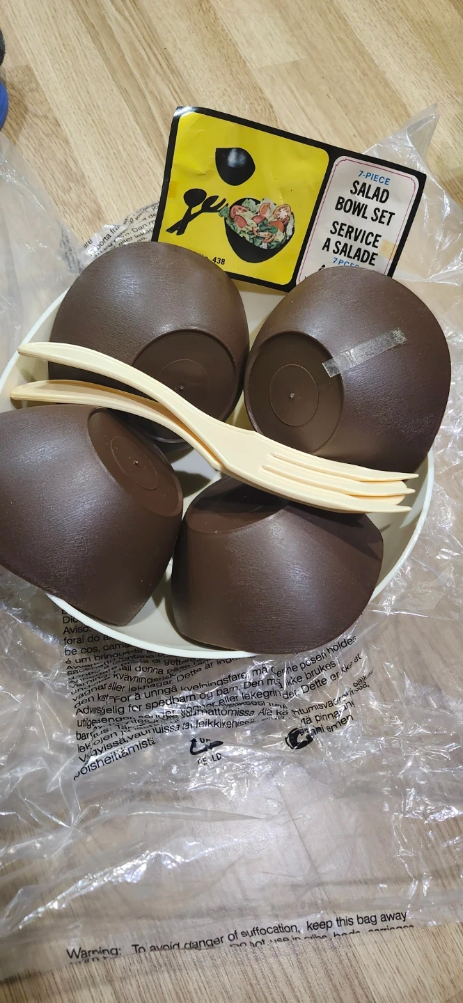 NEVER USED. I'm selling a brand new, in-package Aventura 7-piece salad bowl set! This set includes a large serving bowl, four smaller bowls, and two serving utensils. It's perfect for salads or any side dish. The bowls are a stylish brown colour. Never been used!. Price firm only cash only pickup no delivery 801 O'Connor drive East York outside TD Canada Trust bank door.