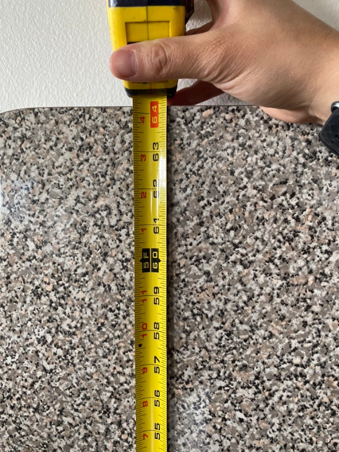 Large piece of grey speckled laminate counter top in good condition. Came from a kitchen island. 5 ft. 4 1/2” long by 3 ft. wide. There is an inch and a half piece out, 18” from the edge (fit around a post). $45 OBO.