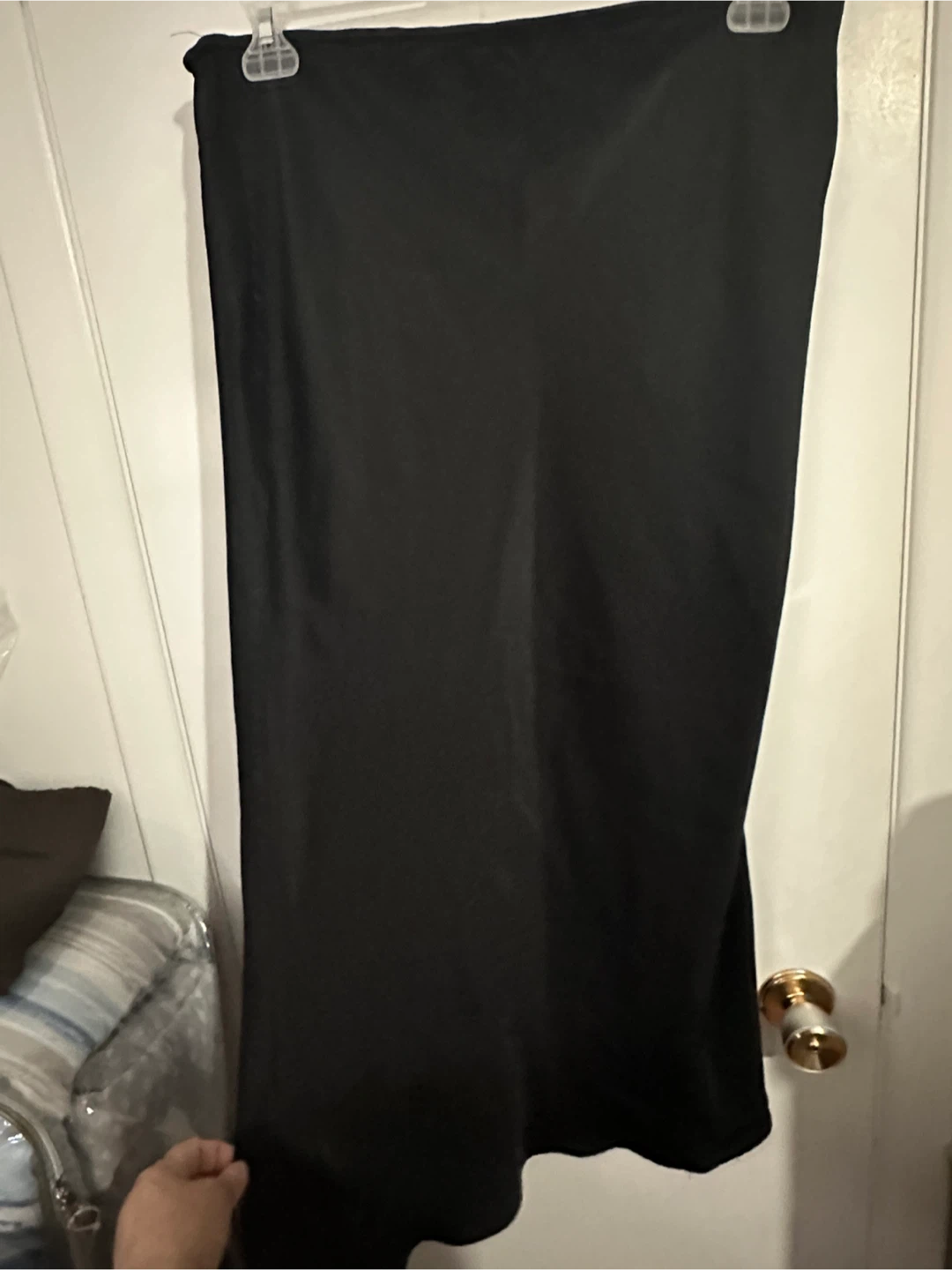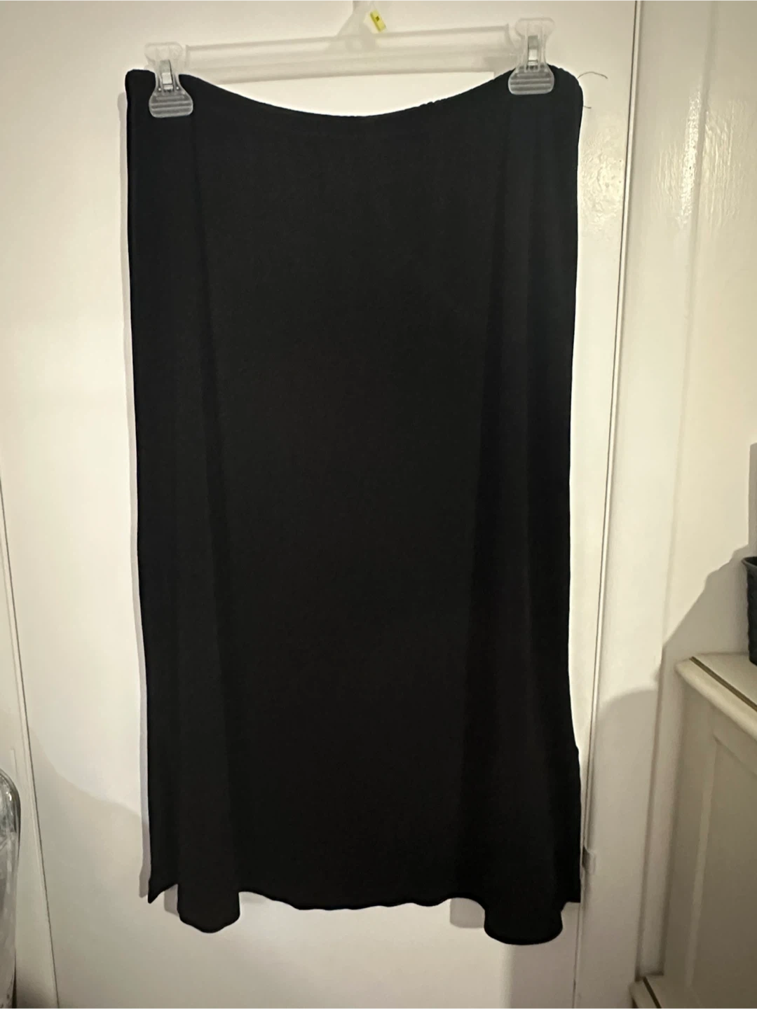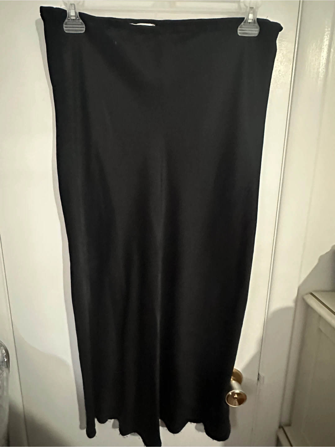 Selling 2 black skirts one from and the other from Topshop and the other from Fiore. Both a US size 14, which is equivalent to an XL. The material is 90% acetate and 10% spandex, the other is silk like material. Fiore skirt has slits one on each side. Both in great condition and ready for a new home. Smoke free home.