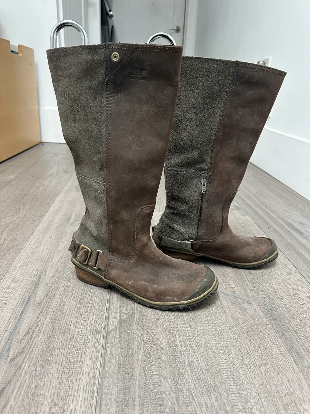Selling a pair of Sorel Slimpack women's suede riding boots in a lovely brown colour! They're a size 7.5 (US) and have a unique design. Perfect for adding a bit of style to your wardrobe!