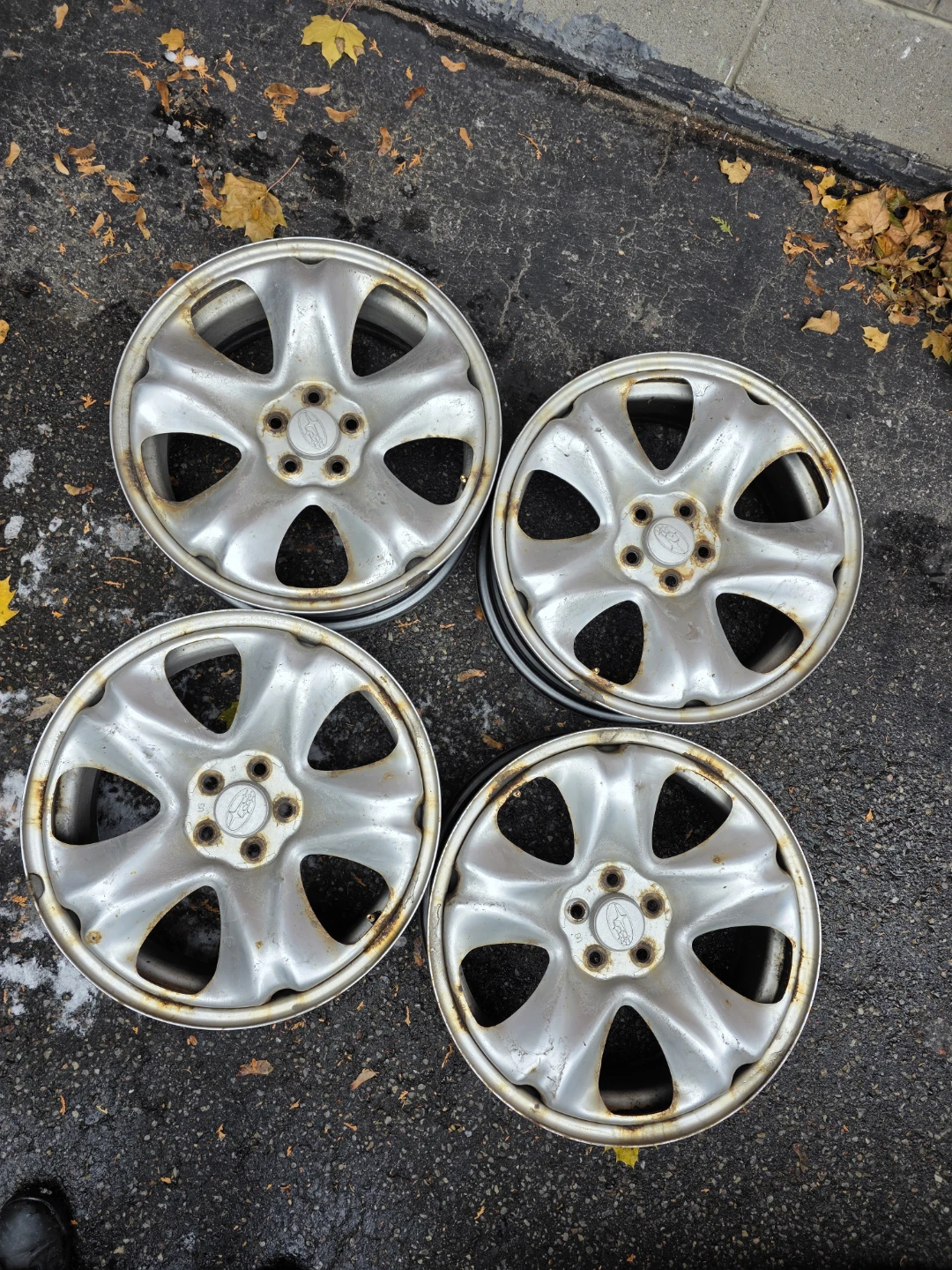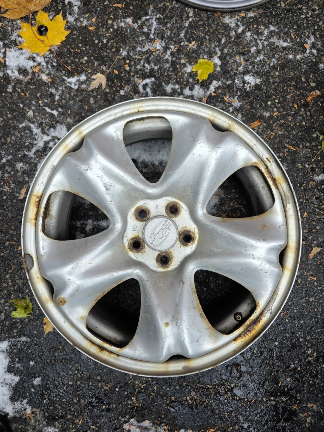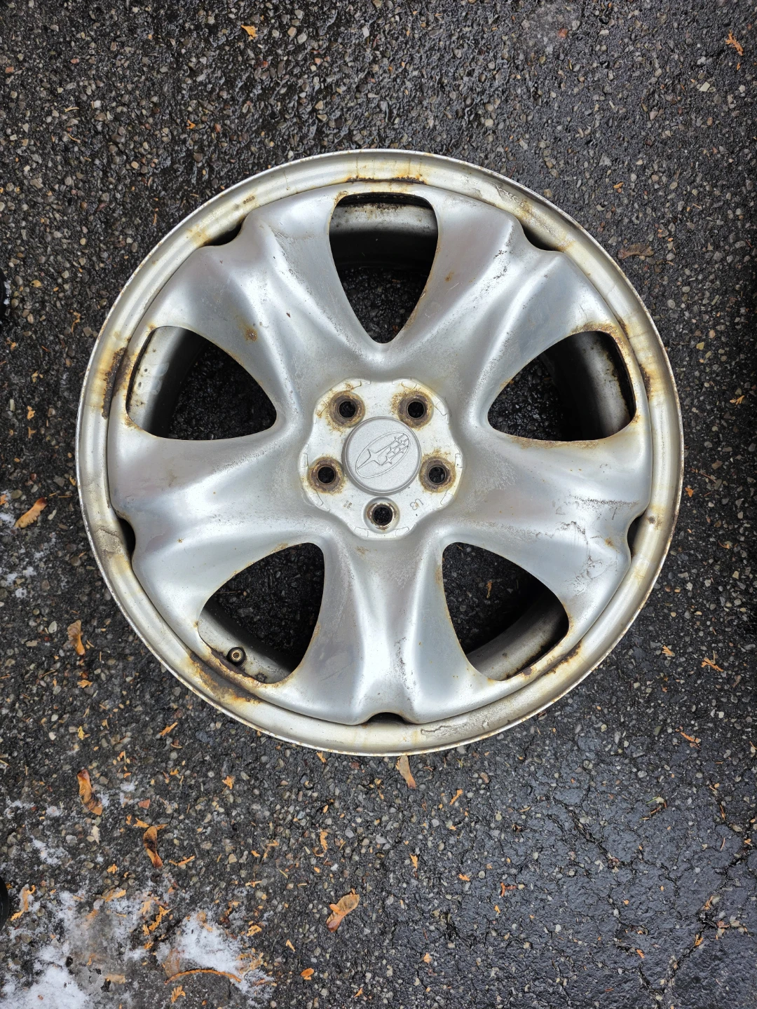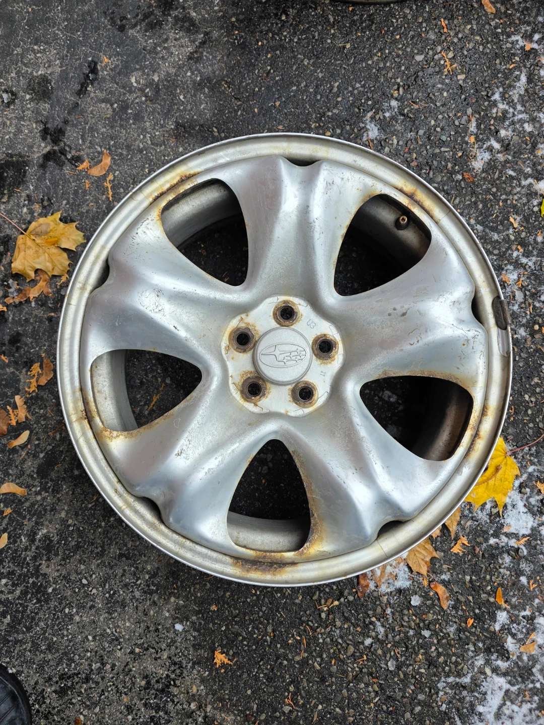 These are used set of four 17-inch Subaru rims, perfect for winter tires or replacing damaged rims. Please note that the rims are in used condition, showing signs of wear and some rust.