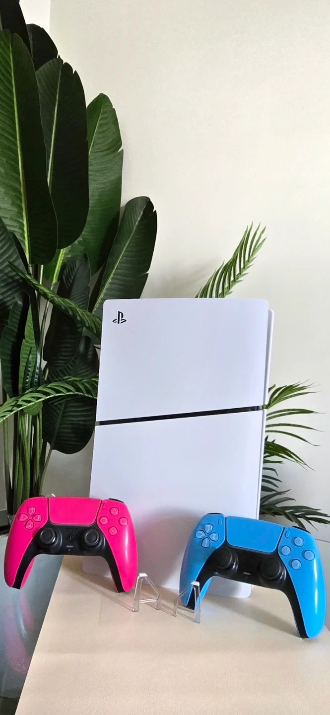 267Selling a PlayStation 5 Slim Disc console! It comes with two controllers, one in pink and one in blue. Great for gaming with friends or family! With box and cables. Firm price, reach out if interested.