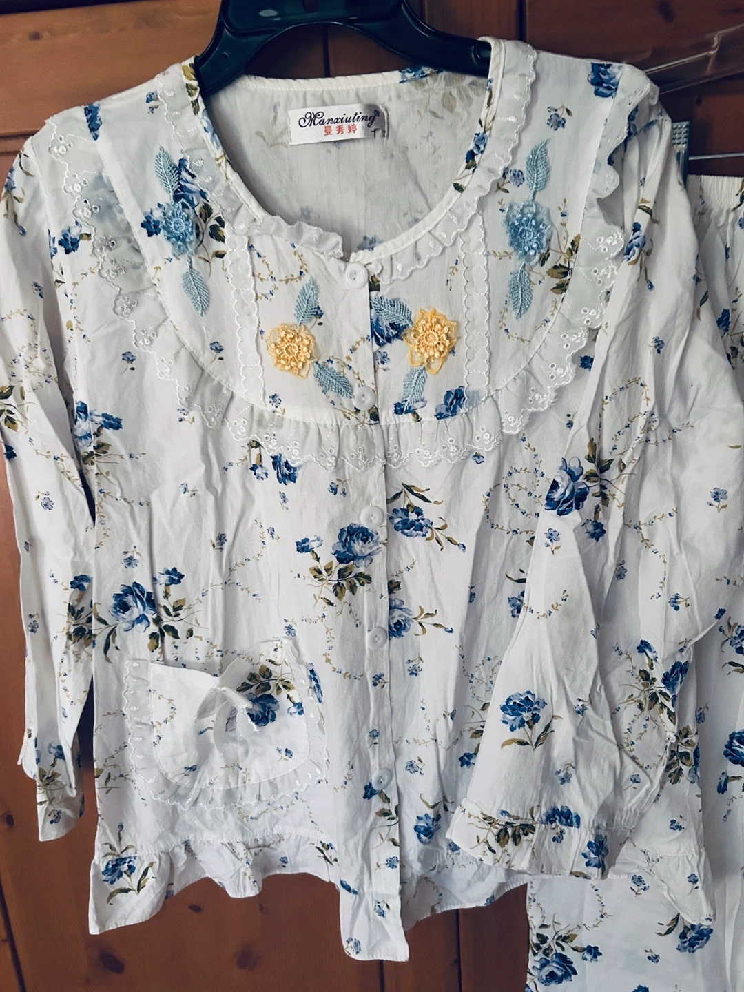 Beautifully adorned with anglais edging and little appliqués of flowers and leaves. There’s a pocket on the jacket, for your cell phone and other necessities 🌹