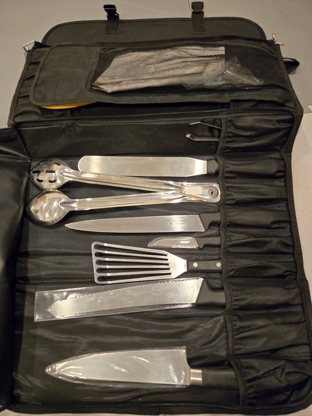 Selling a F. Dick Canada knife set that comes with a convenient carrying bag. The set includes various knives and kitchen tools, perfect for any chef or cooking enthusiast! The bag has compartments to keep everything organized and secure