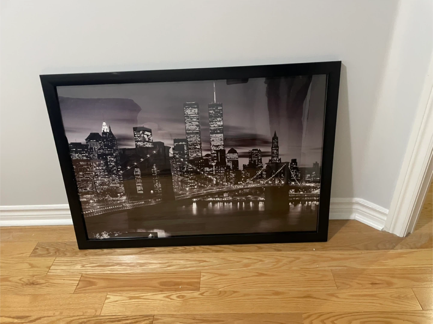 81A framed print of the New York City skyline. Great for adding a touch of urban chic to your space Length: 38.5 in Height: 26.5 in