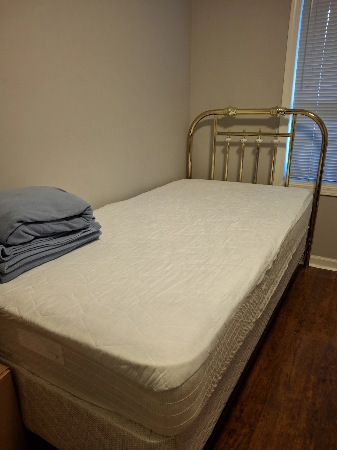 FREE! Single bed frame and mattress with removable brass headboard. Mattress is in excellent condition but I'm moving & dont have the space for it.