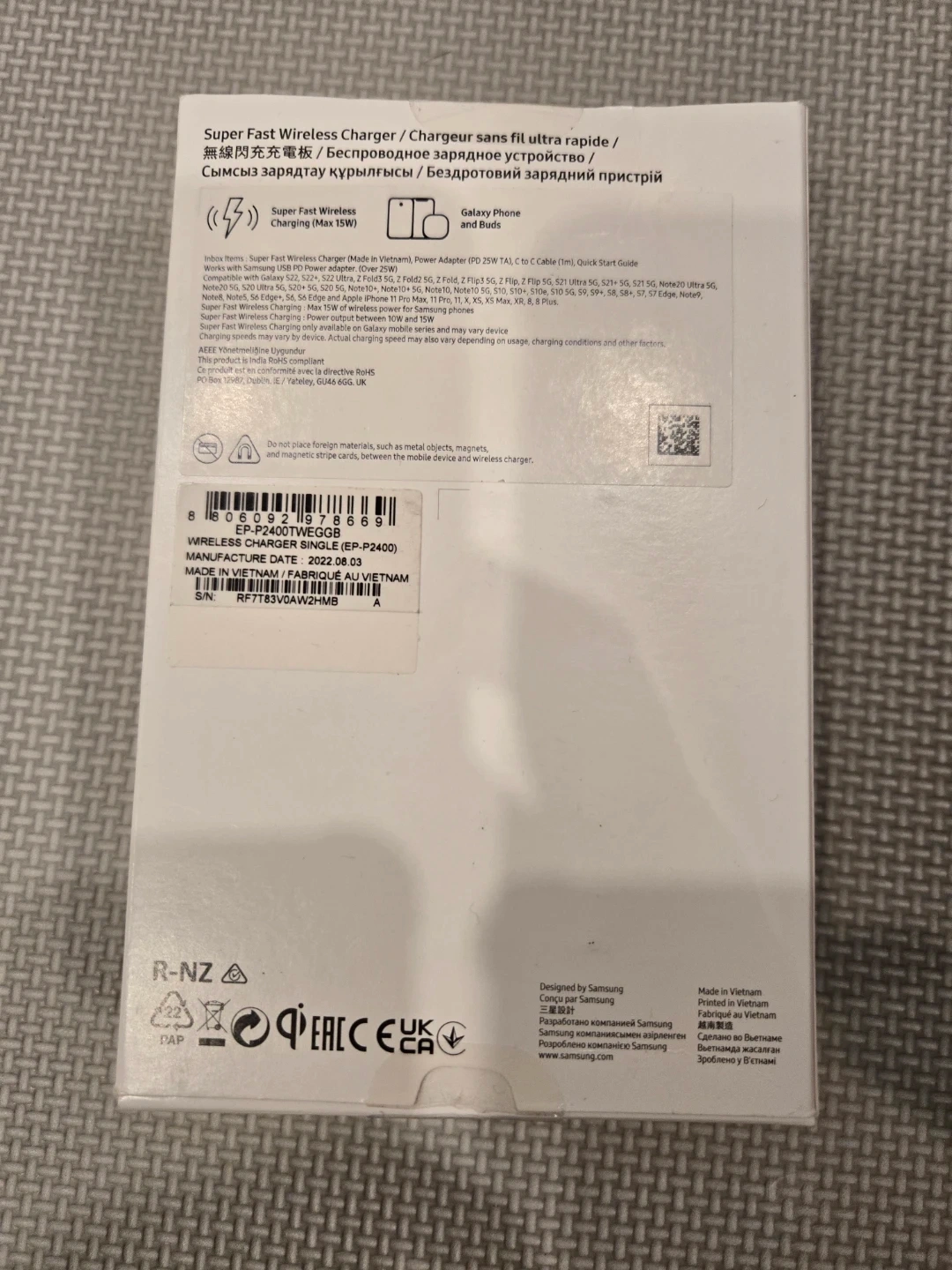 Selling a Samsung Wireless Charger Single (EP-P2400). It's in great condition and comes with the original box.