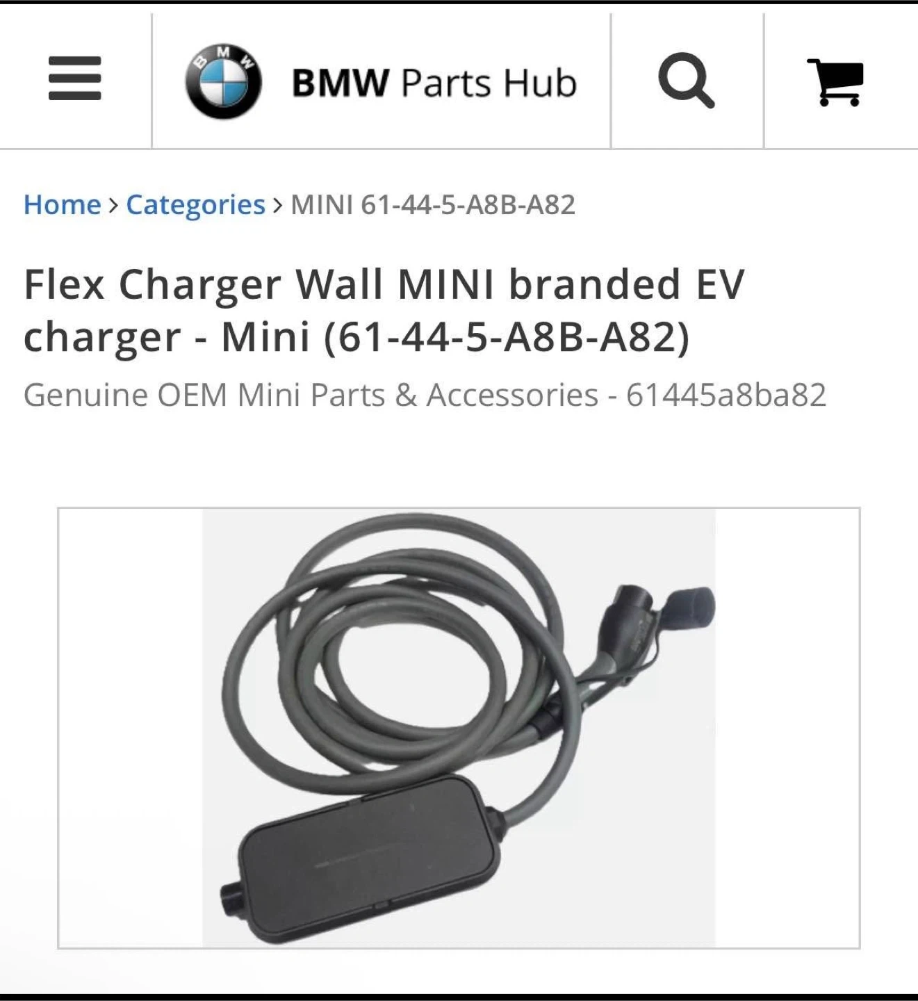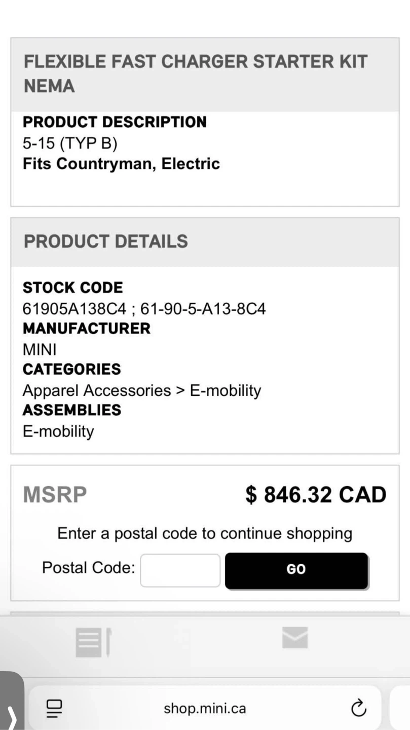 93Selling a MINI branded Flex Charger Wall EV charger. This is a genuine OEM Mini part and accessory. It's compatible with MINI Countryman ALL4 SE (2021-2024) and MINI Electric SE 3 Door (2021-2024).Priced for $846.32 CAD