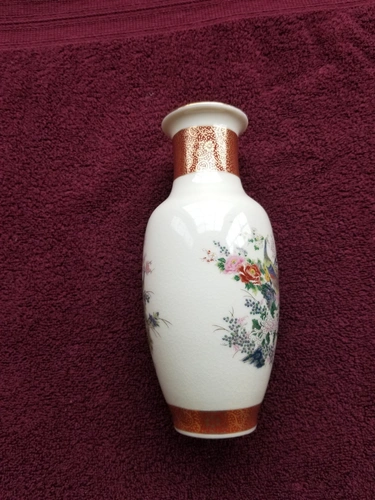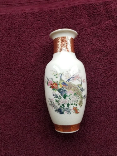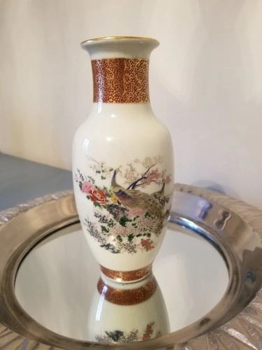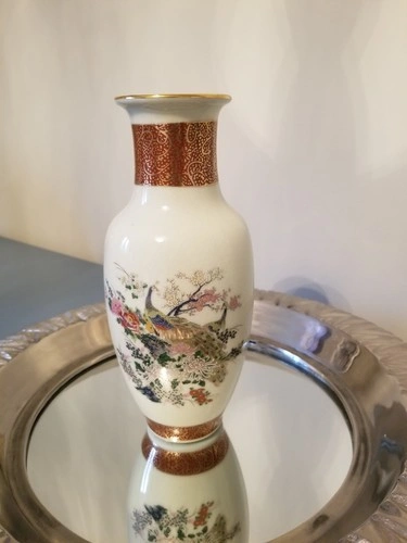 Vintage Hand Painted Satsuma Vase Peacock and floral design