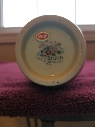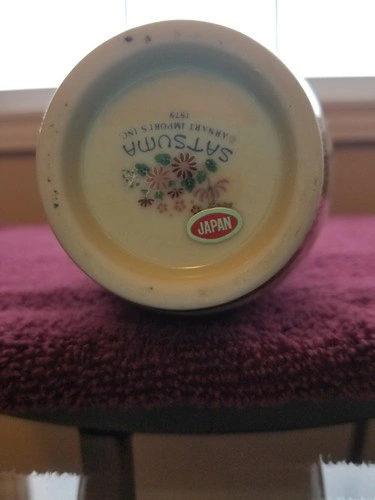 Vintage Hand Painted Satsuma porcelain vase with crackle glazing. Beautiful Peacock and floral design in multi-colours with a gold rim. A Japanese import from Arnart Imports 1979. Add to your collection or enjoy as a stand-alone piece. 8 inches high x approx. 3.5 to 4 inches across