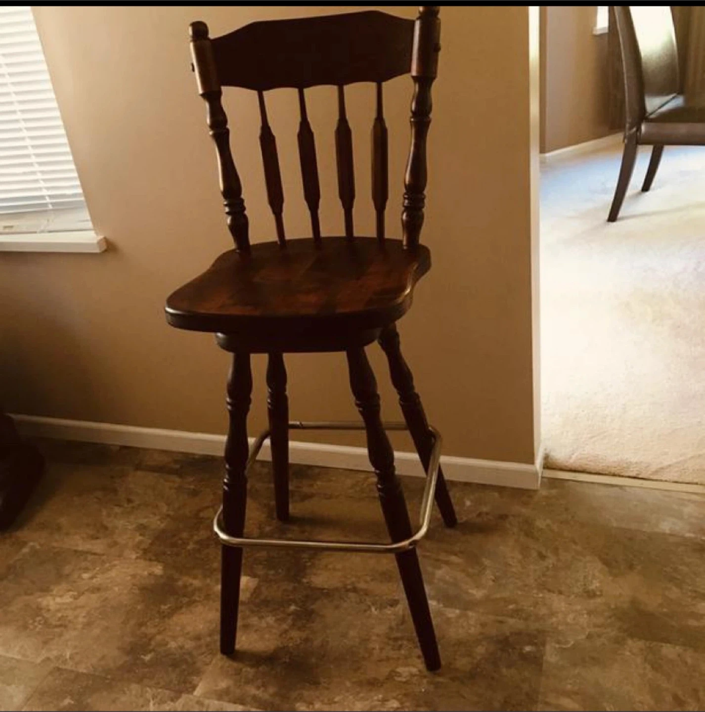 Selling a 44” tall wooden swivel bar stool. It's in great condition and would be a great addition to any workplace, kitchen or bar area