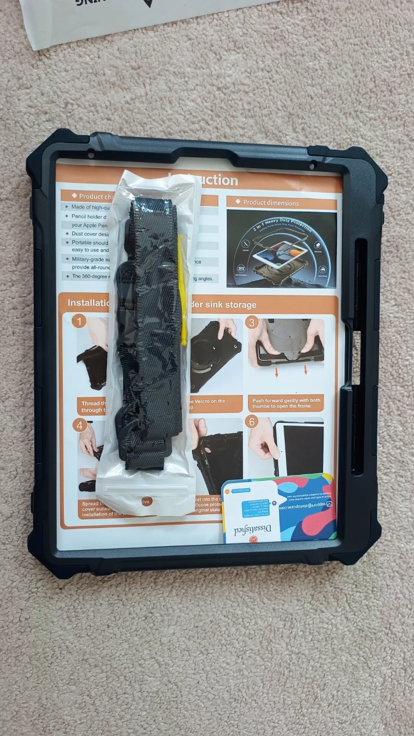 Selling a ZtotopCase rugged case for a 12.9 inch iPad in black. This case is made of high-quality materials and features a pencil holder, dust cover design, and is easy to use. It also provides all-around protection with its 360-degree rotating angles. Includes a shoulder strap for easy carrying!