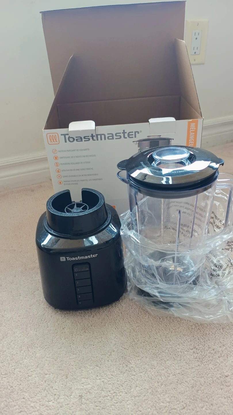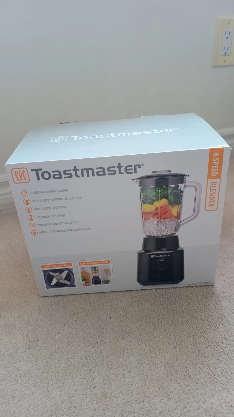 Selling a brand new Toastmaster 6-speed blender! It has a powerful 450-watt motor and a 48 oz (6 cup) blending jar included. It also has multiple speed settings and one-touch operation. Perfect for shakes, smoothies and more! Stainless steel blades included too. The box is included.
