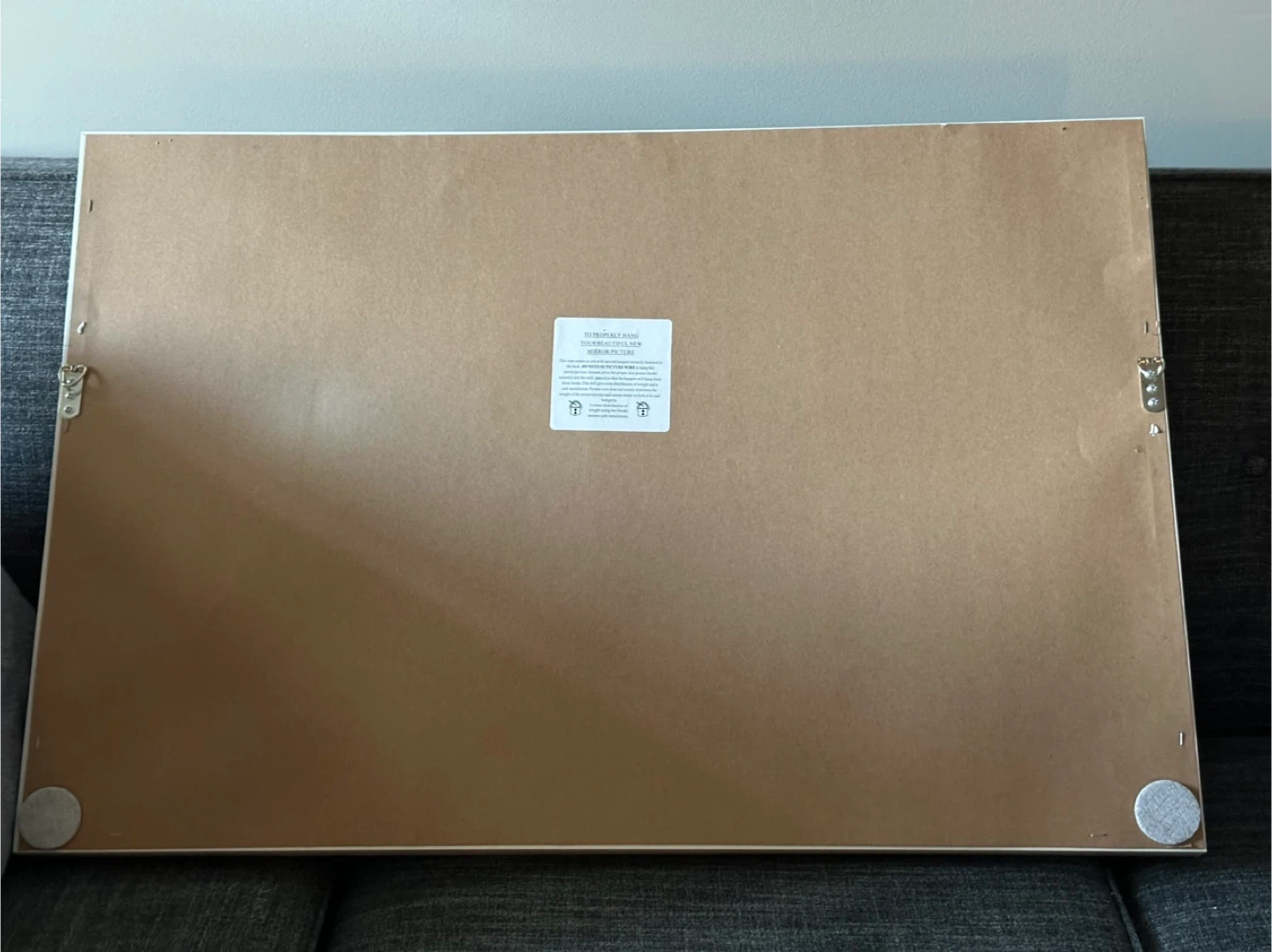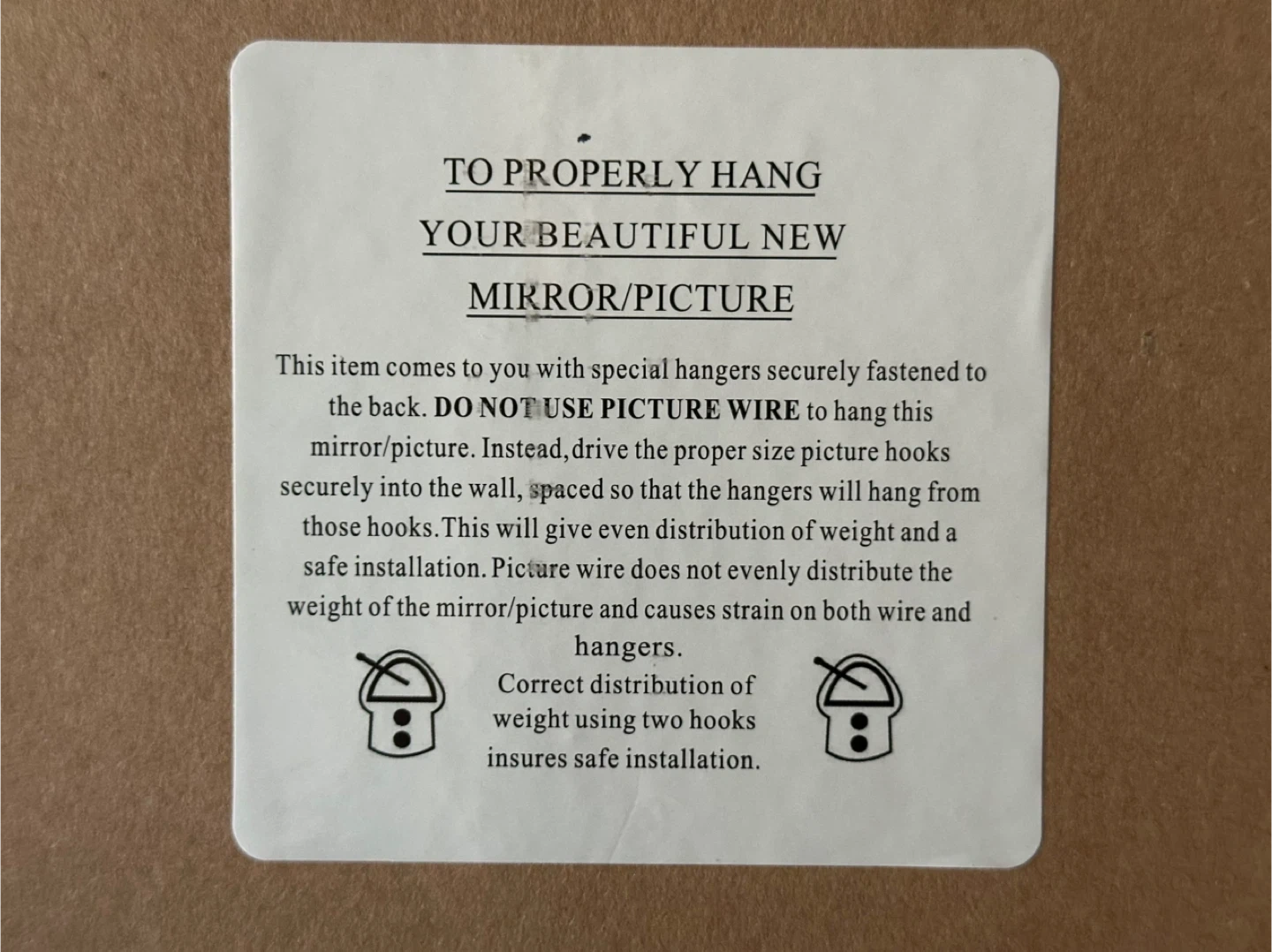 Selling a framed print featuring a forest and birds design. The back has instructions on how to properly hang it using two hooks for even weight distribution