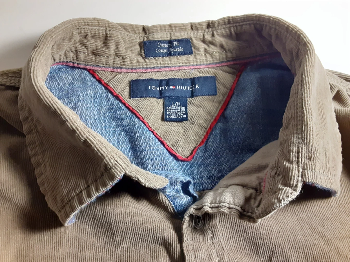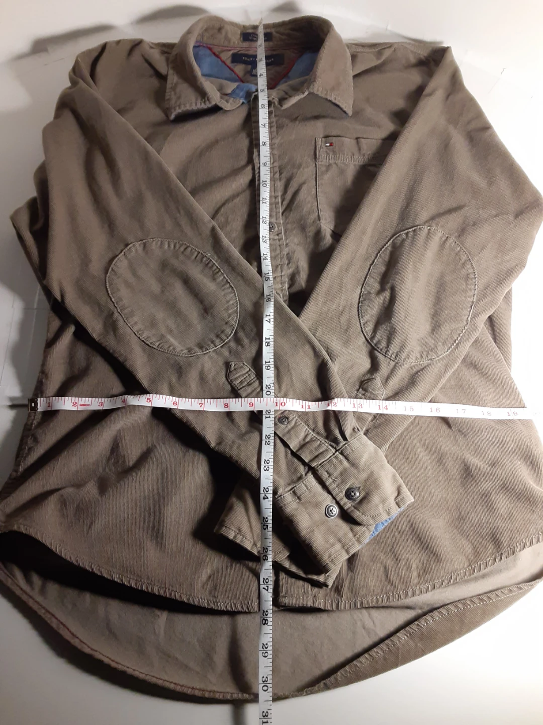 Tommy Hilfiger - large(see images for measurements) custom fit, beige corduroy, long sleeve shirt. Lightly worn, in great condition, perfect for a casual look.