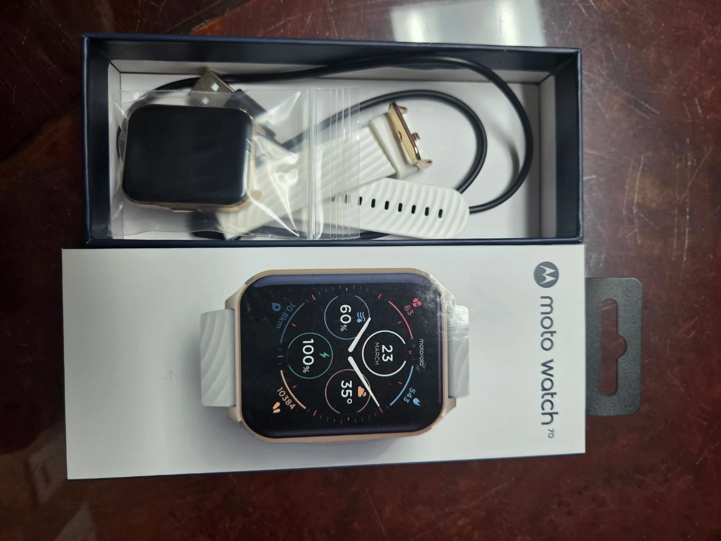 Selling a Moto Watch 70 smartwatch. It comes with the original box and all included components. The watch has a white band and a charger is included in the box