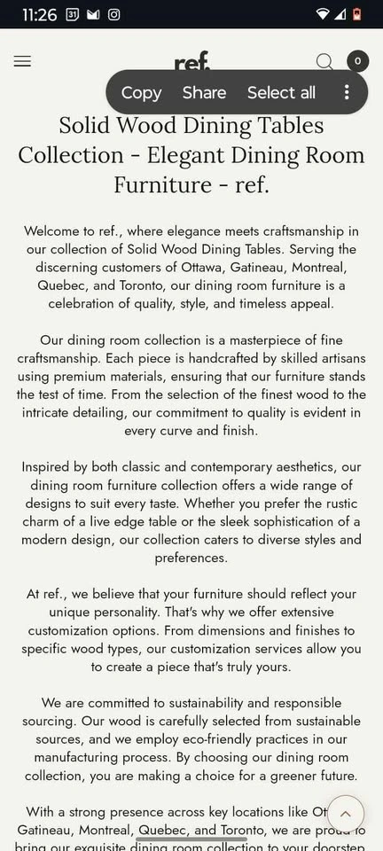 Very rare, one of a kind Oak Dining Table. Made by Ref-Co.ca. of Gatineau Quebec. Solid wood, elegant design. Special order and never been used. Too big for our space.