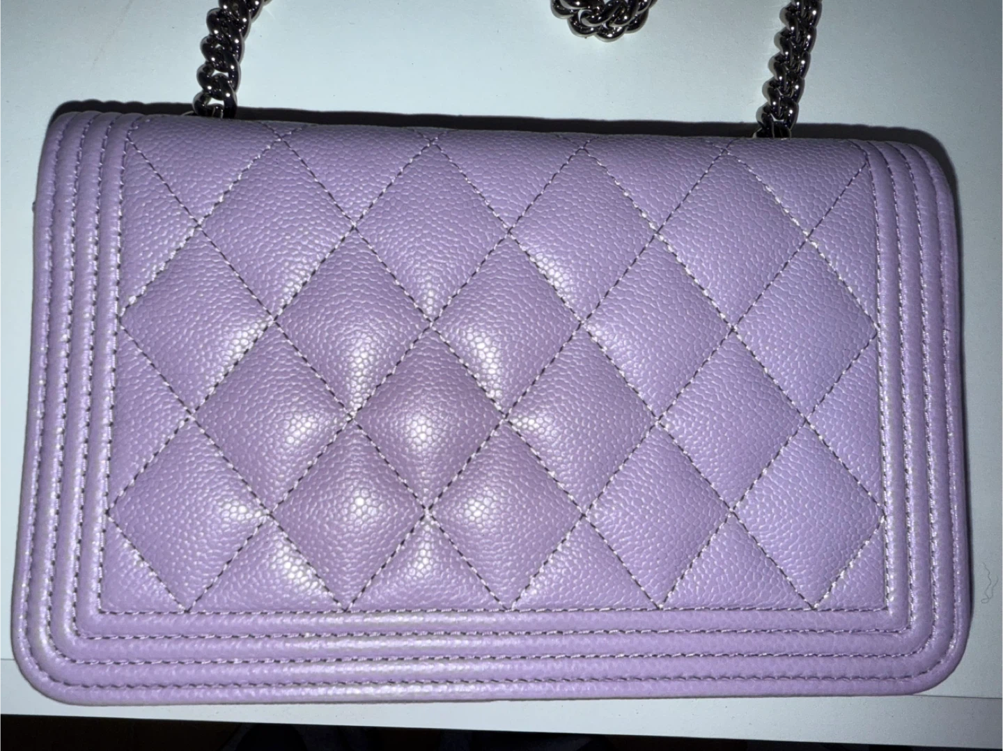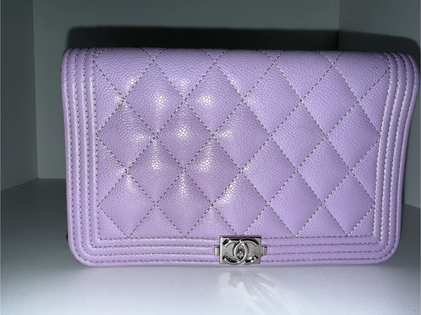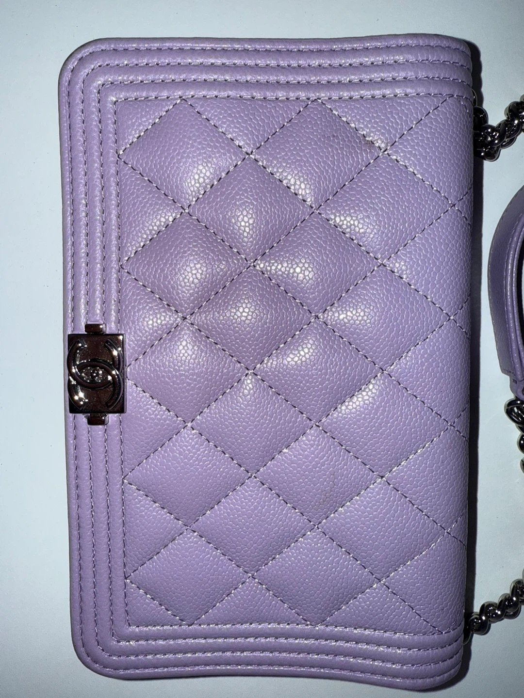 Selling a beautiful Chanel Boy Wallet on Chain in a lovely lilac colour. It's in great condition and perfect for carrying your essentials in style!