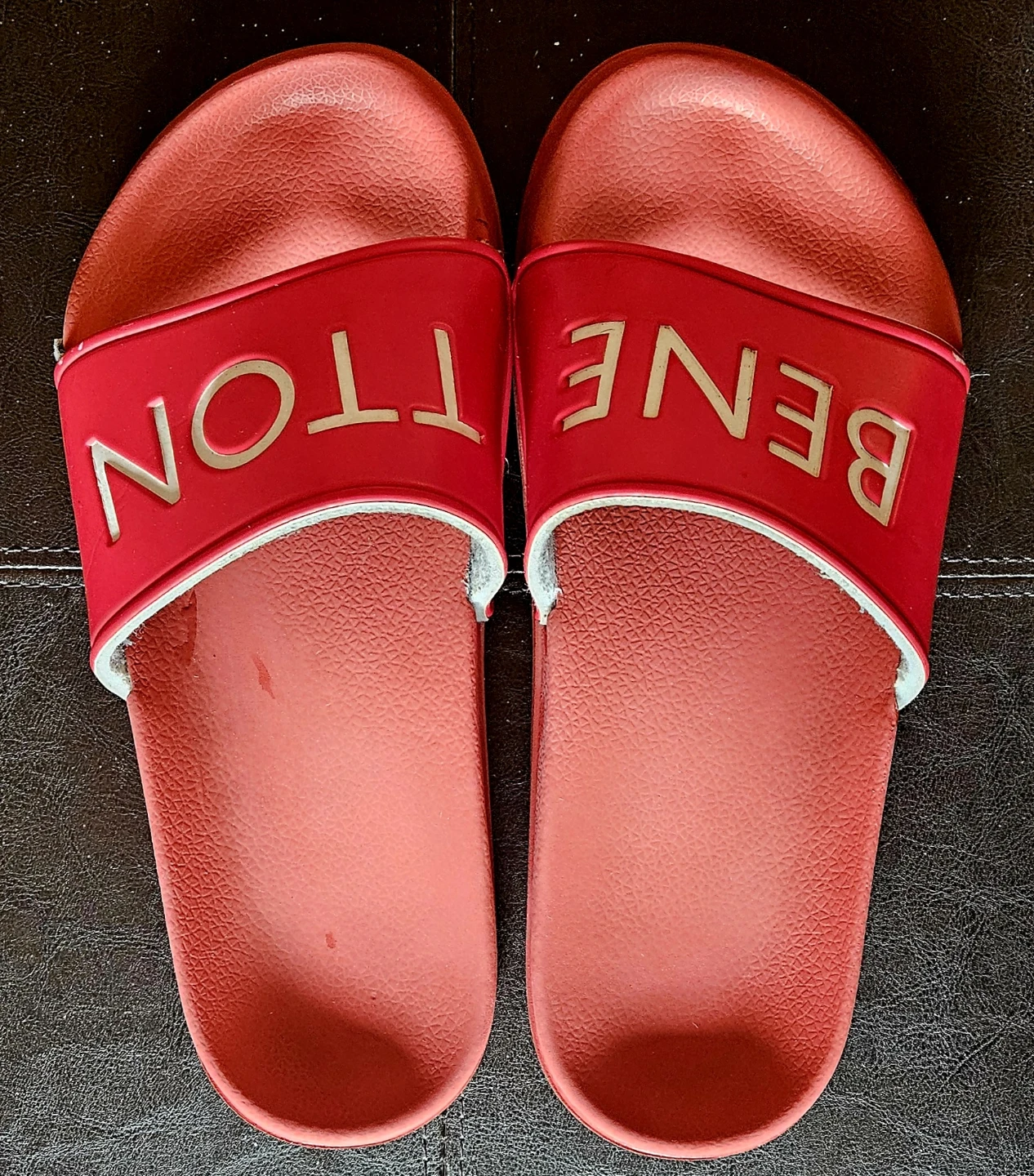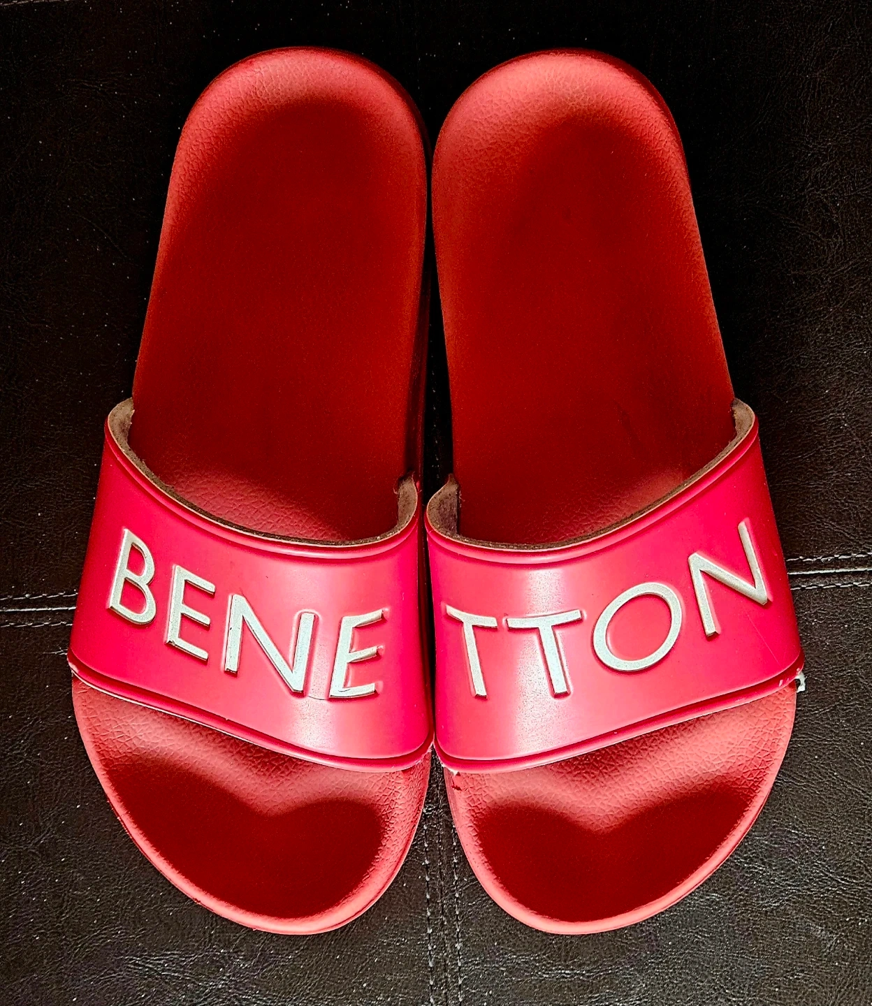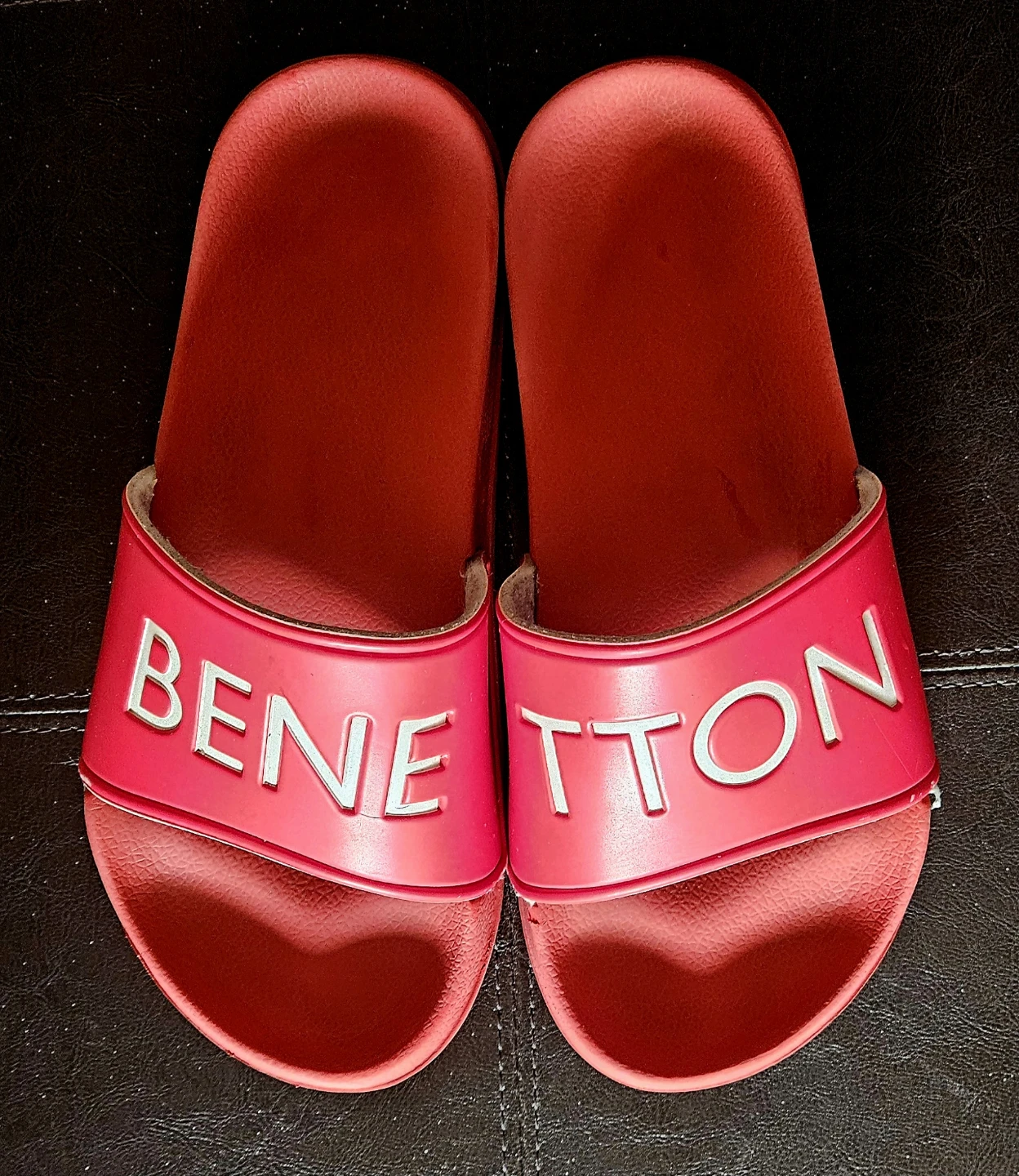 Selling a pair of Benetton slides in red! Though used, they are in excellent condition and would be perfect for creating a festive vibe. They appear to be size 9.