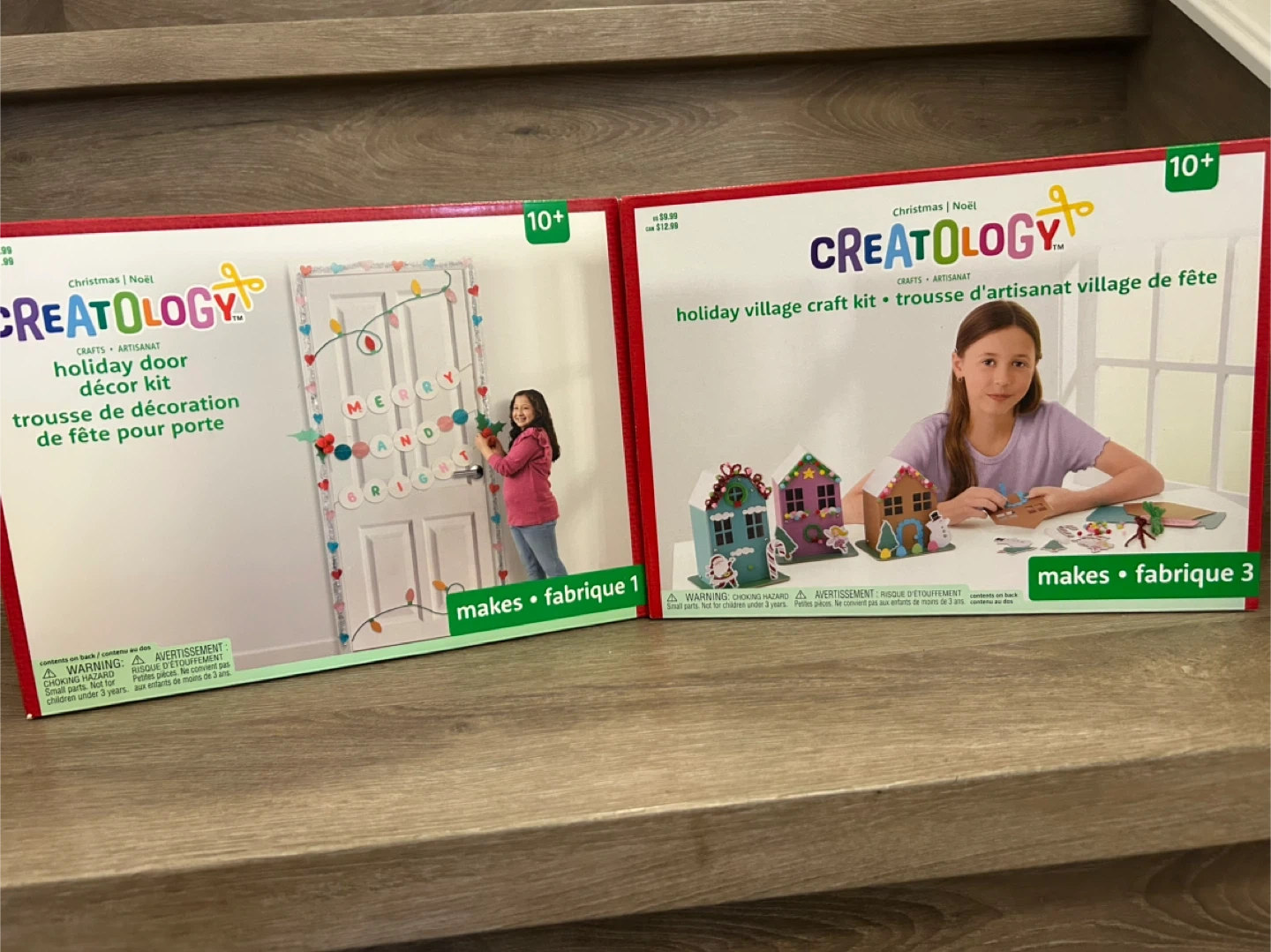 two Creatology Christmas craft kits available! One is a holiday door decor kit and the other is a holiday village craft kit. Both are brand new and ready for some festive crafting fun for ages 10+