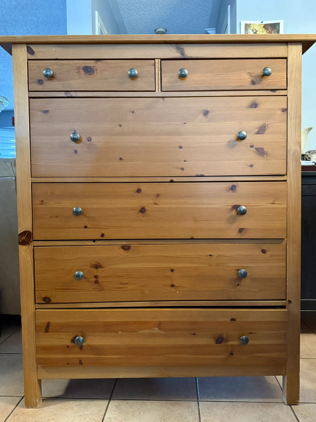 Selling a used IKEA Hemnes 6-drawer dresser in pine. It's in good condition and has lots of storage space. The dimensions are 42 1/2x51 5/8 ". Need it gone asap, price is negotiable