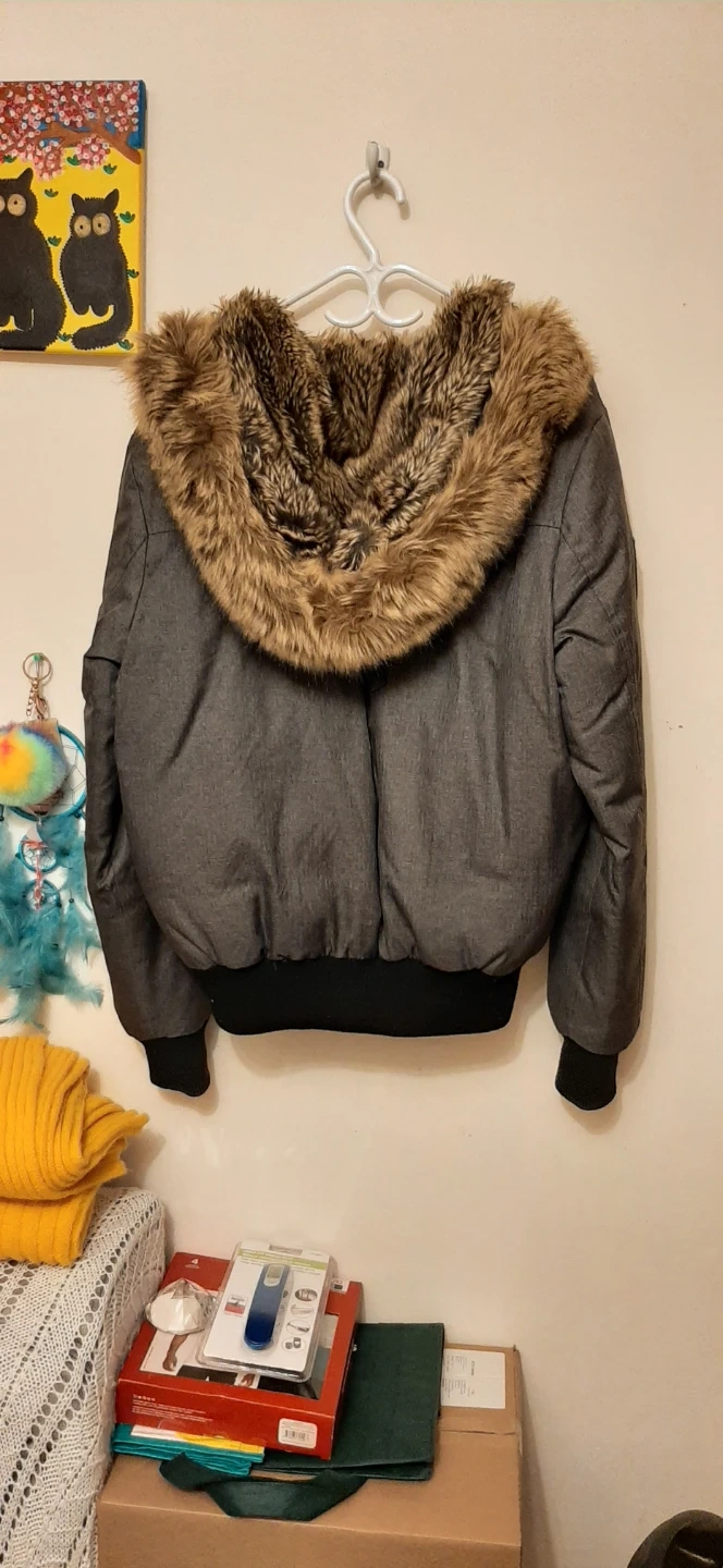 Very Cozy & warm Storm Mountain jacket with a faux fur built-in hood that can be zipped in and out! It's in excellent conditions and has been gently used only a few times. The jacket features a stylish design with a full zipper up to the neck and has 5 pockets in total. You can try it on you when you'll come, before buying.