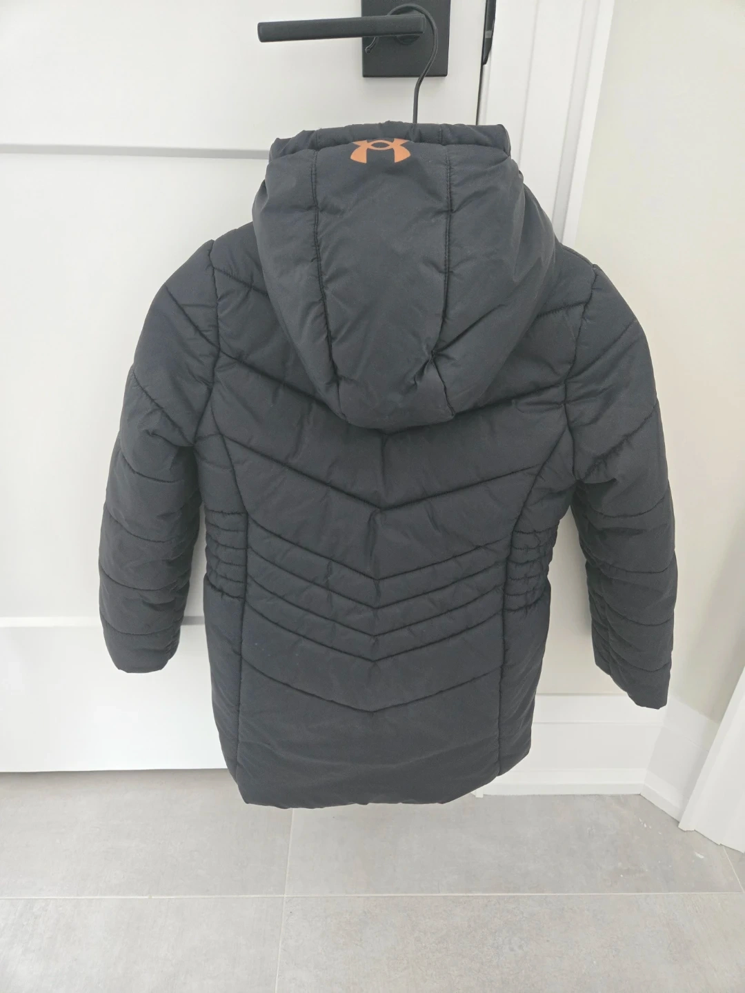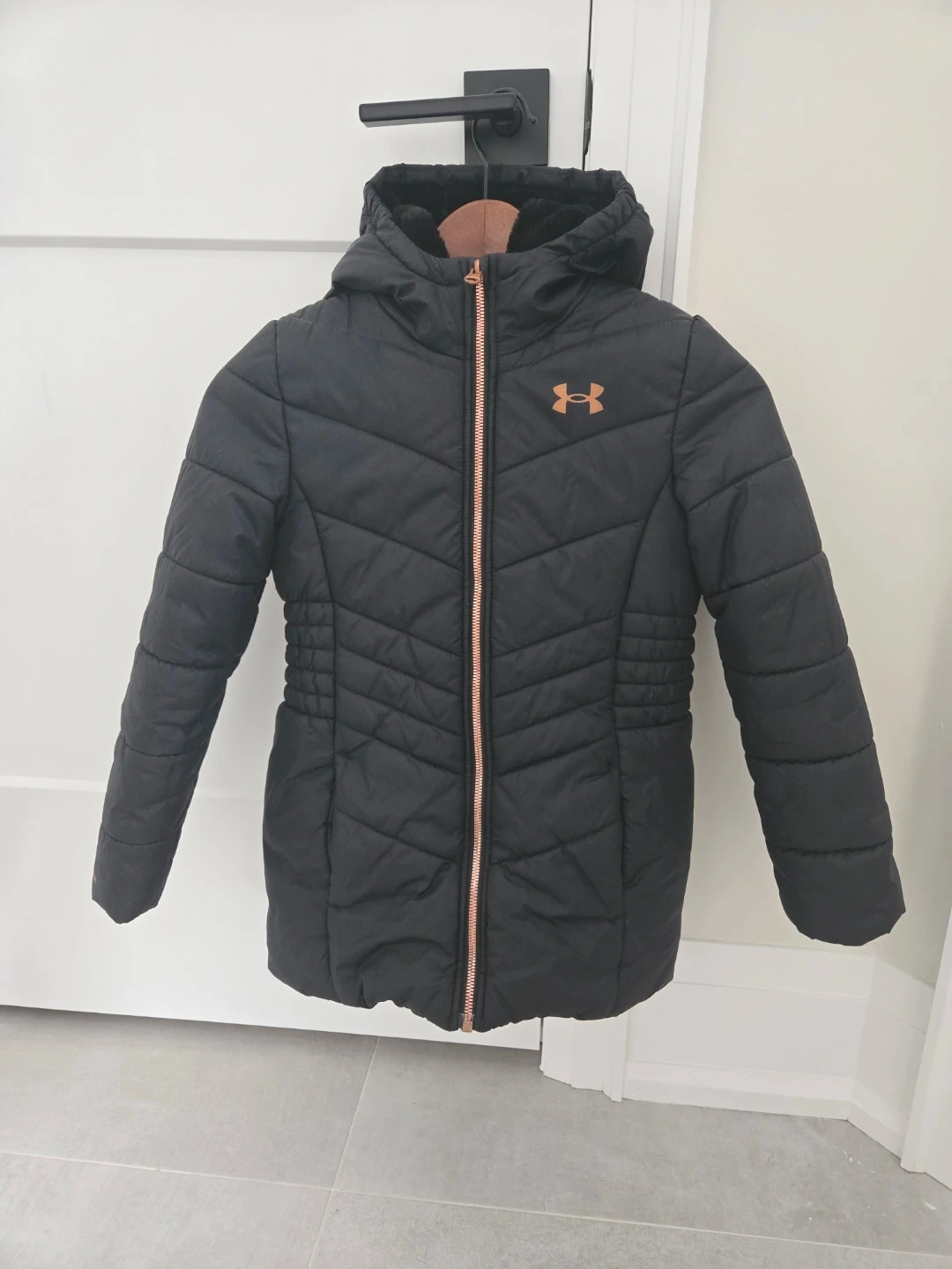 Cozy Under Armour Cold Gear jacket for youth in size small! It's black with a warm, furry lining, perfect for keeping your little one snug during the colder months