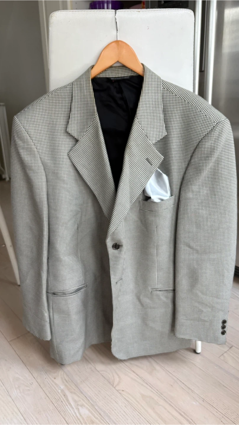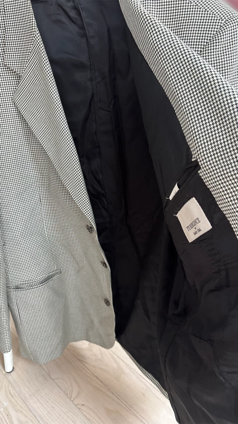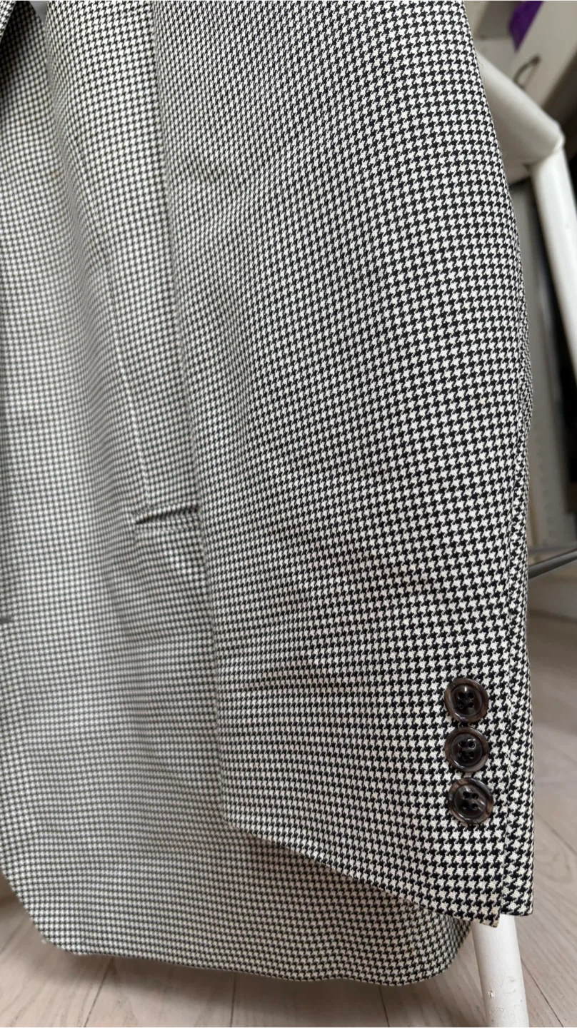 Selling a Terrance blazer with a classic houndstooth pattern! It's in great condition and has a sleek black lining. Perfect for adding a touch of sophistication to any outfit. Size is 46 (XXL) on the blazer.