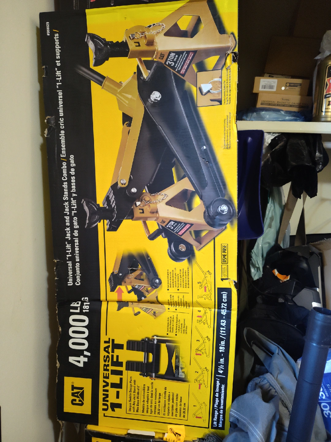 Selling a CAT Universal 1-Lift Jack only This set can handle up to 4,000 lb (1814 kg). The lift range is 4 1/2 in. - 18 in. (11.43 - 45.72 cm). It comes in its original box. call or text Jorge at 587)930 0465. asking price 225.obo
