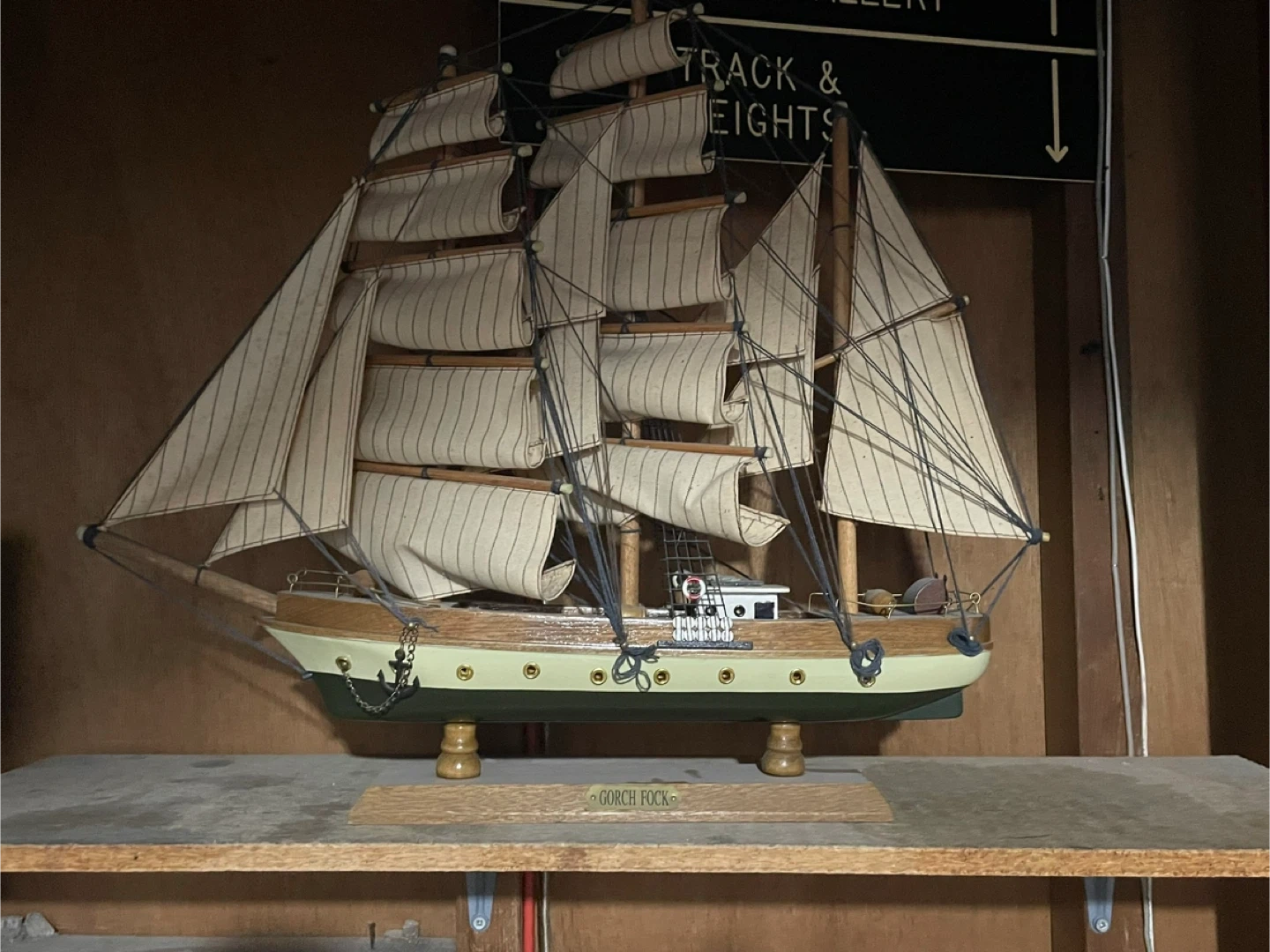 Selling a vintage model ship of the Gorch Fock! It's a beautiful piece for any nautical enthusiast or collector. The details are quite charming, and it would look great on a bookshelf or mantle